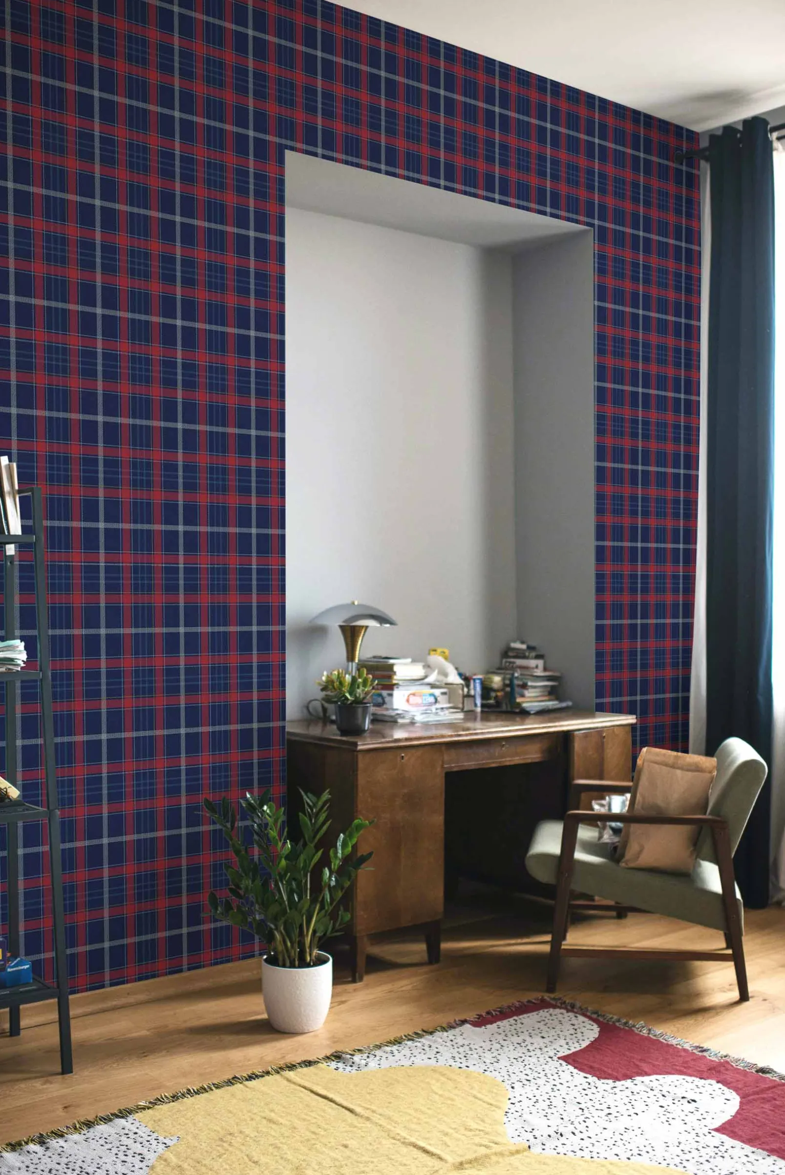 Tartán con cuadros de 11,5 x 11,5 cm en dos tonos con una textura inspirada en el kilt.