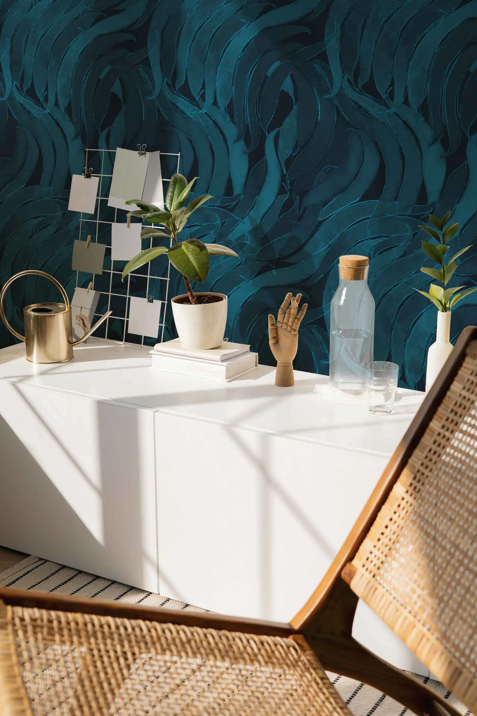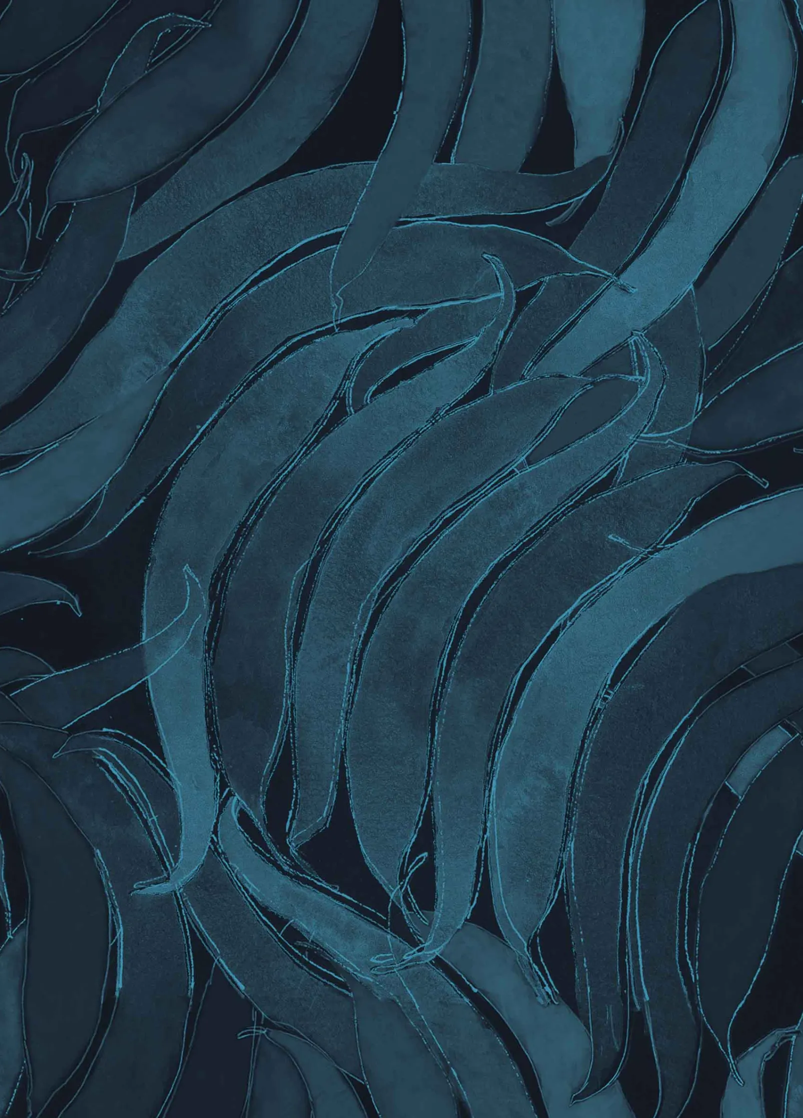 El papel pintado Crop Fossils Sapphire de Coordonné es un diseño vegetal en color azul/marino de la colección Geo.