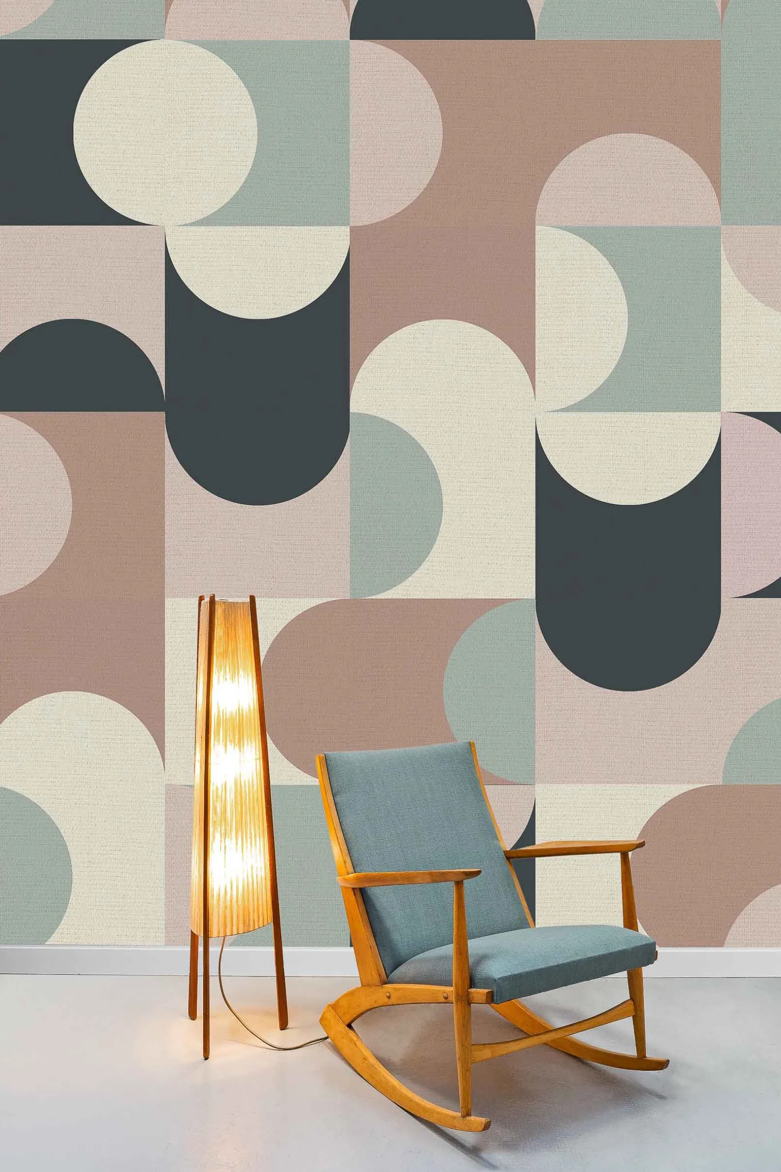 El mural Estellenchs Pink de Coordonné es un geométrico diseñado en tonos rosa/lila de la colección Mallorca.