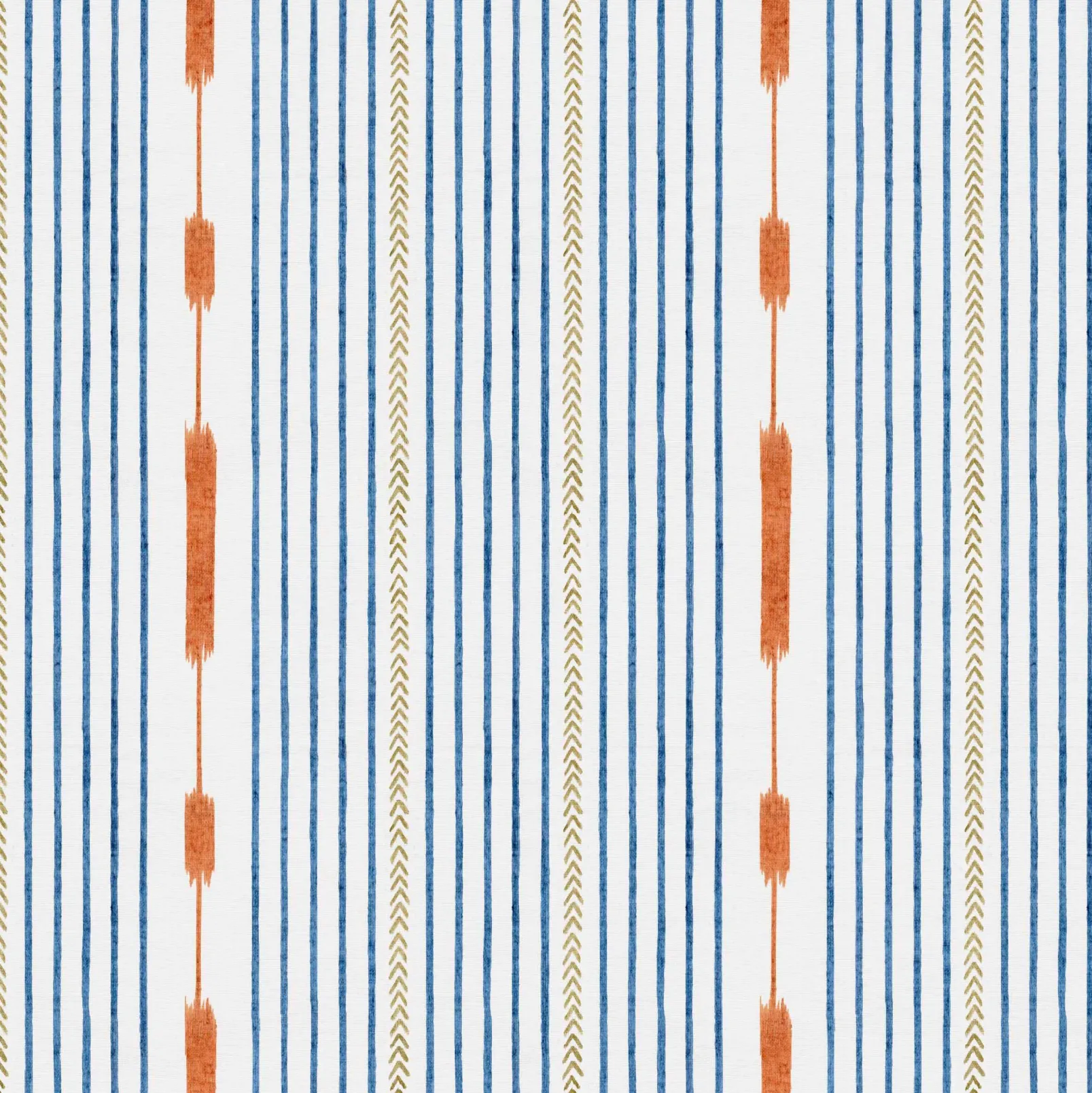 El papel pintado Huipil Blue de Coordonné es un diseño de rayas en tonos azules/azules marinos. La colorida vestimenta de las mujeres indígenas de Centroamérica.