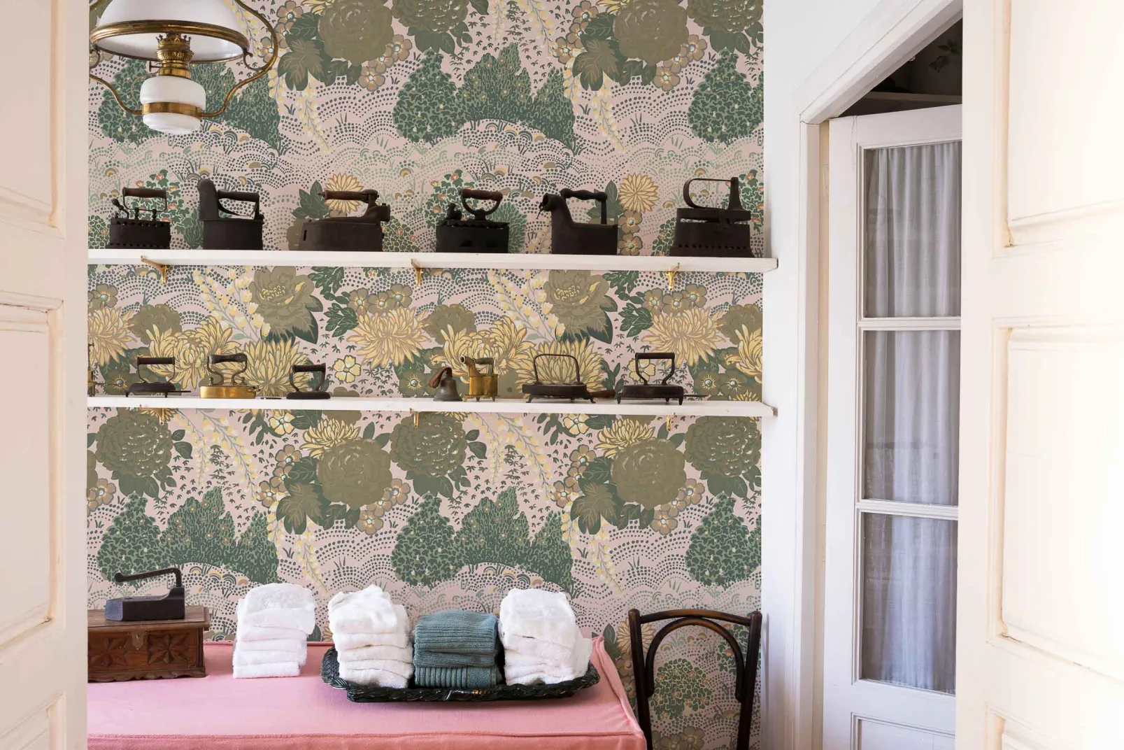 Maria Luisa Rosáceo de Coordonné es un diseño floral en rosa/lila de la colección Feria. Colinas ostentosamente cubiertas con abundancia de crisantemos.