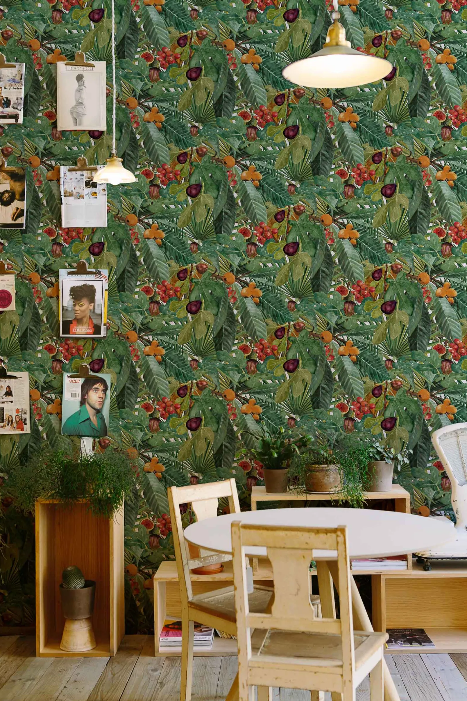 El papel pintado Neovegetable Summer de Coordonné es un Vegetal diseñado en tonos verdes de la colección Metamorphosis.