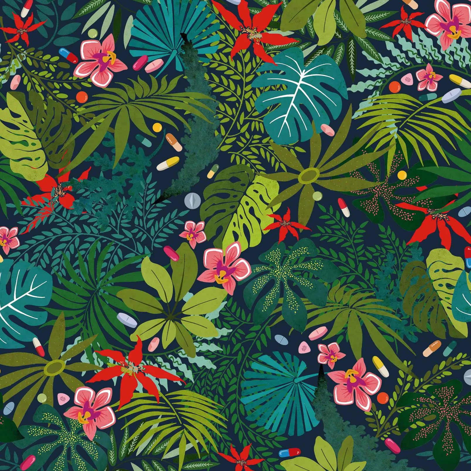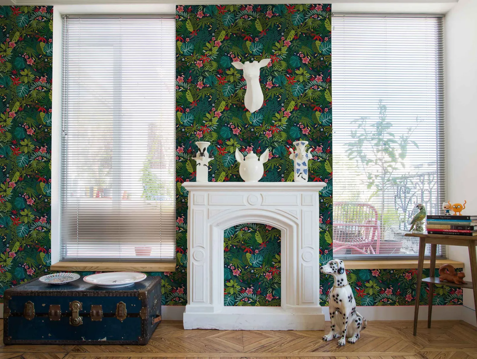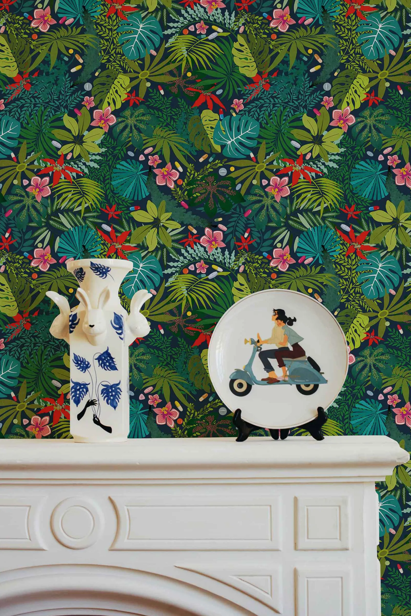 El papel pintado Paraísos artificiales Marino de Coordonné es un Vegetal diseñado en tonos Verdes de la colección Anima.