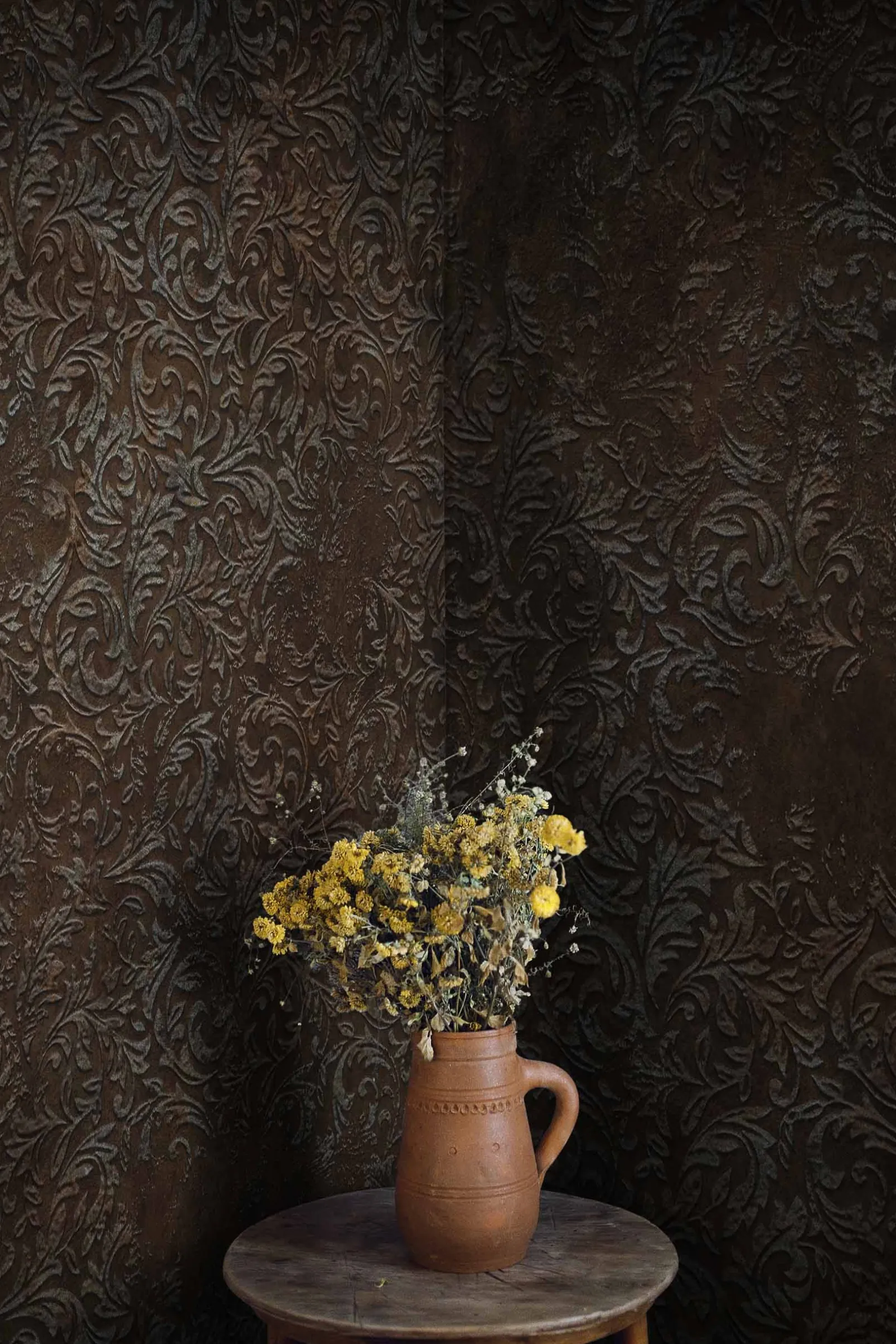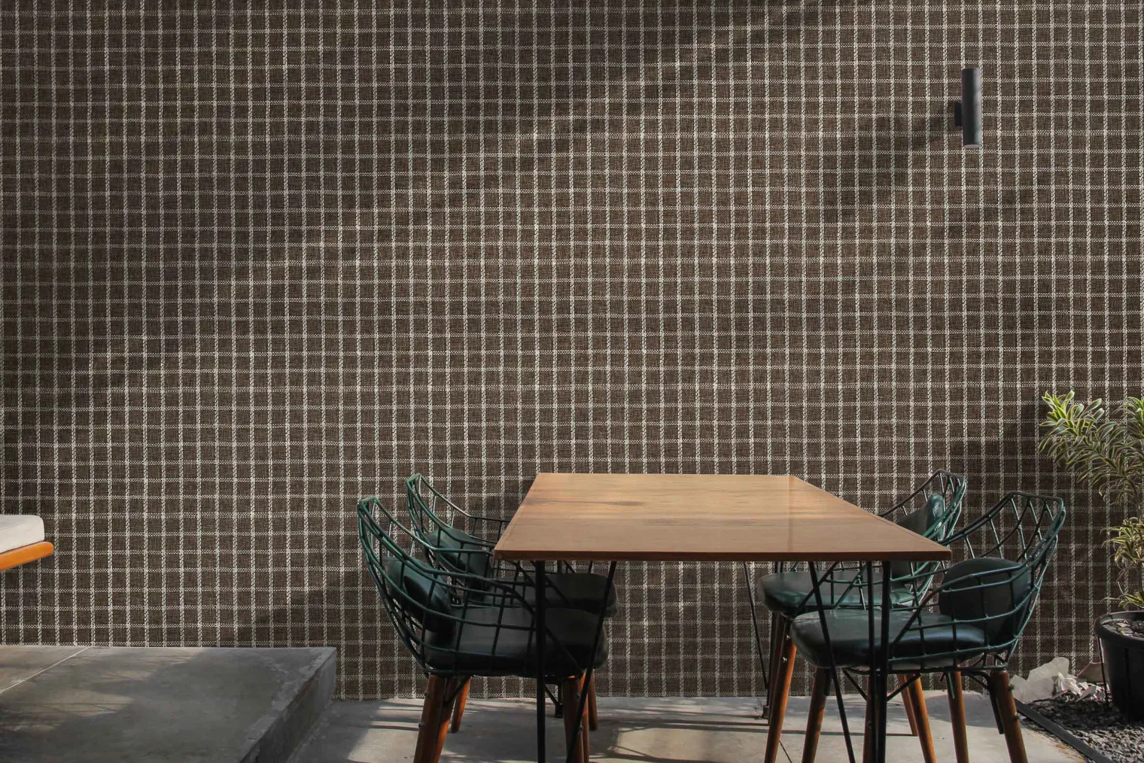 El papel pintado de Coordonné es una textura/material diseñada en tonos marrones de la colección Raffias+.