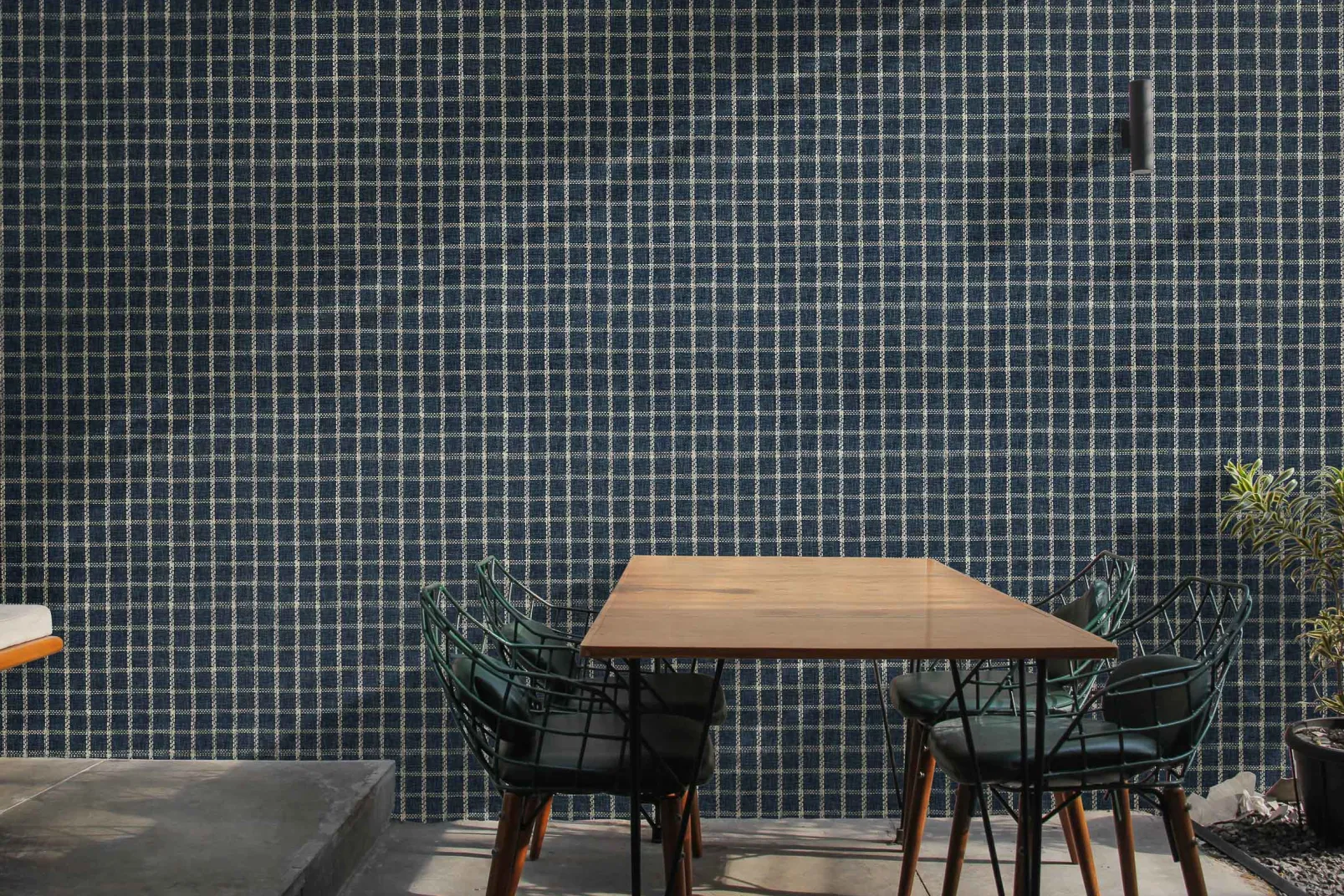 El papel pintado de Coordonné es una textura/material diseñada en tonos azules/marinos de la colección Raffias+.