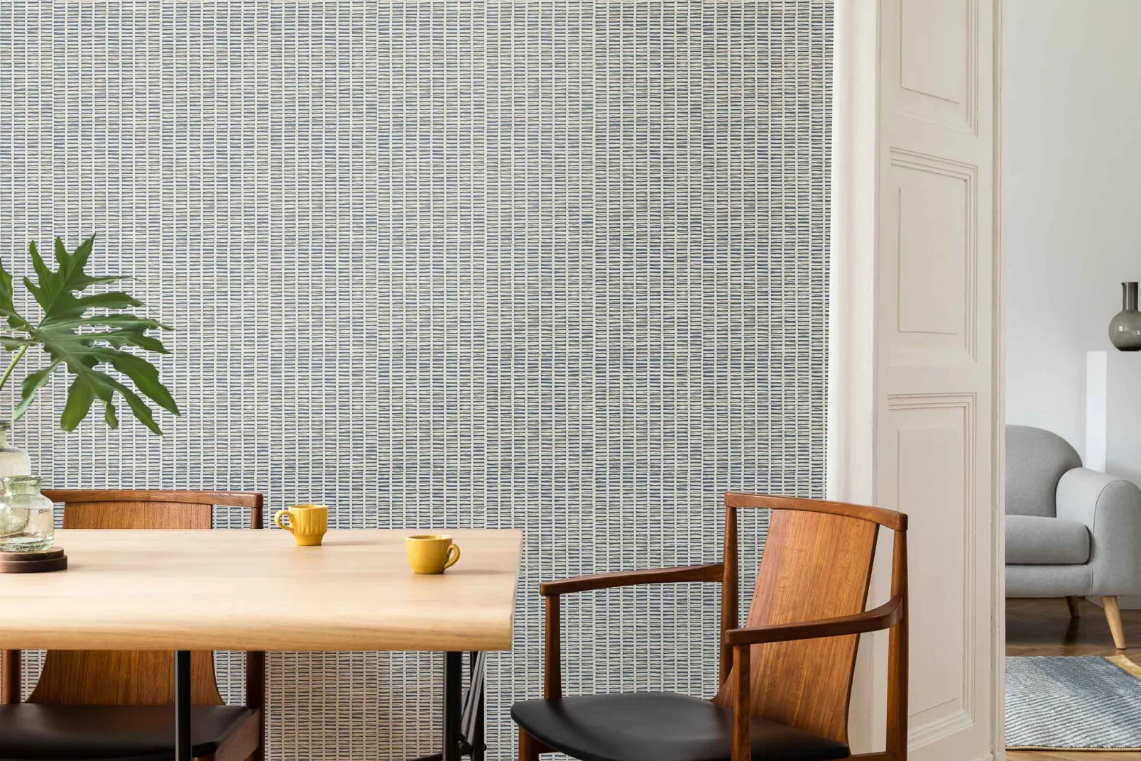 El papel pintado de Coordonné es una textura/material diseñada en tonos azules/marinos de la colección Raffias+.