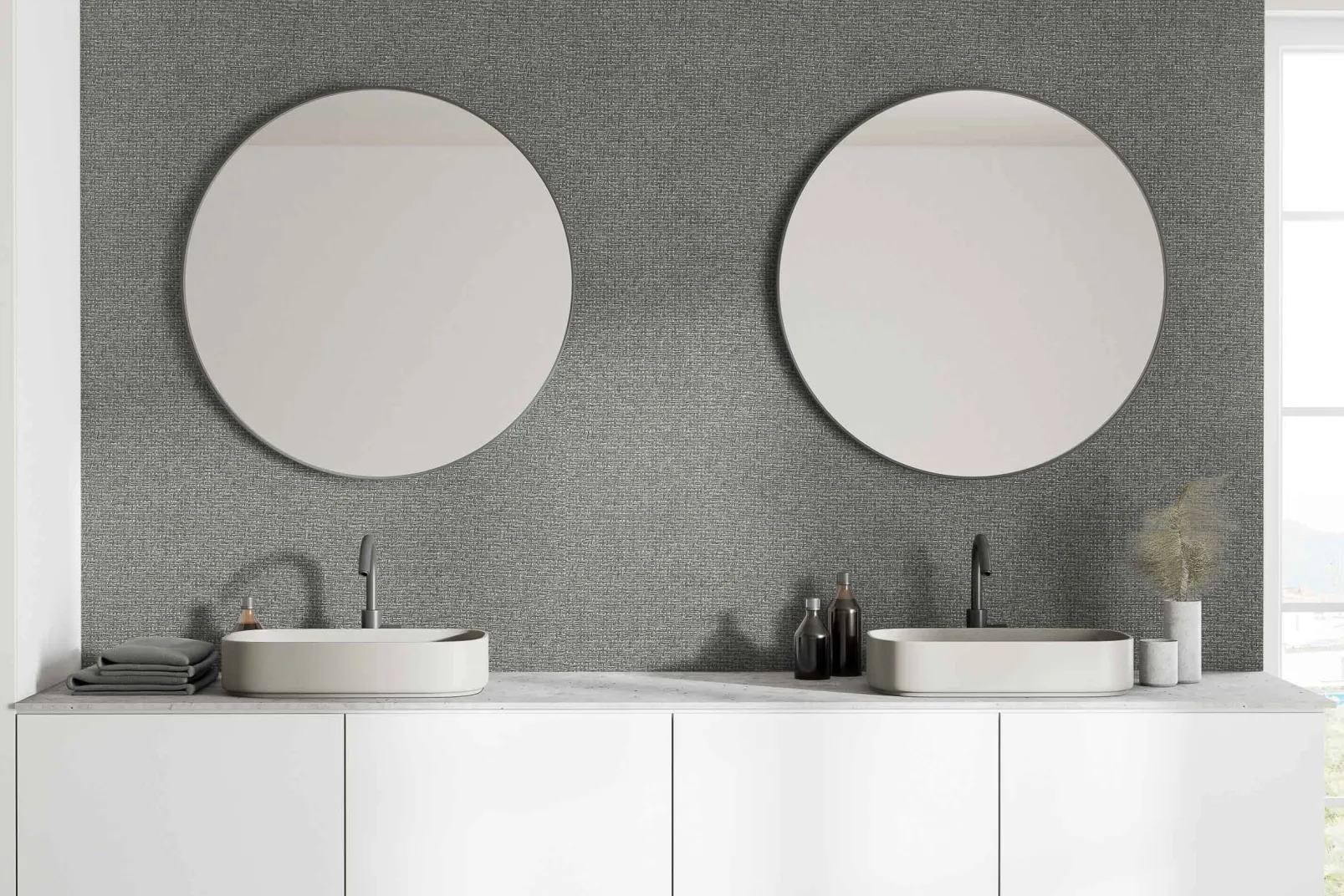 El papel pintado de Coordonné es una textura/material diseñada en tonos blanco/gris de la colección Raffias+.