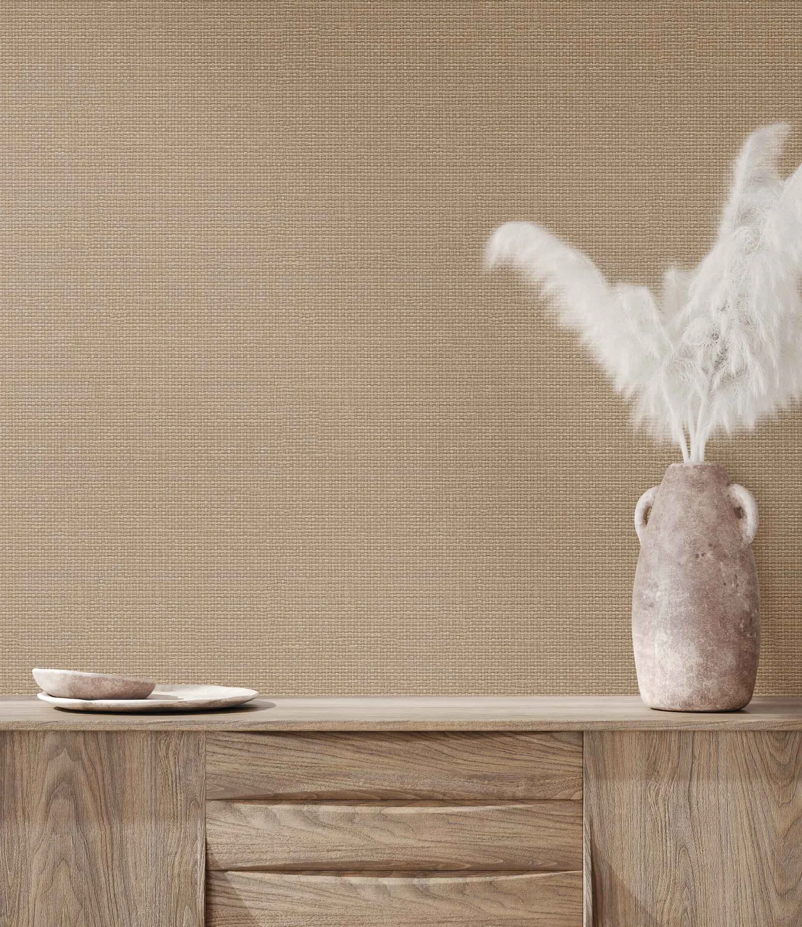 El papel pintado de Coordonné es una textura/material diseñada en tonos Beige/Nude de la colección Raffias+.