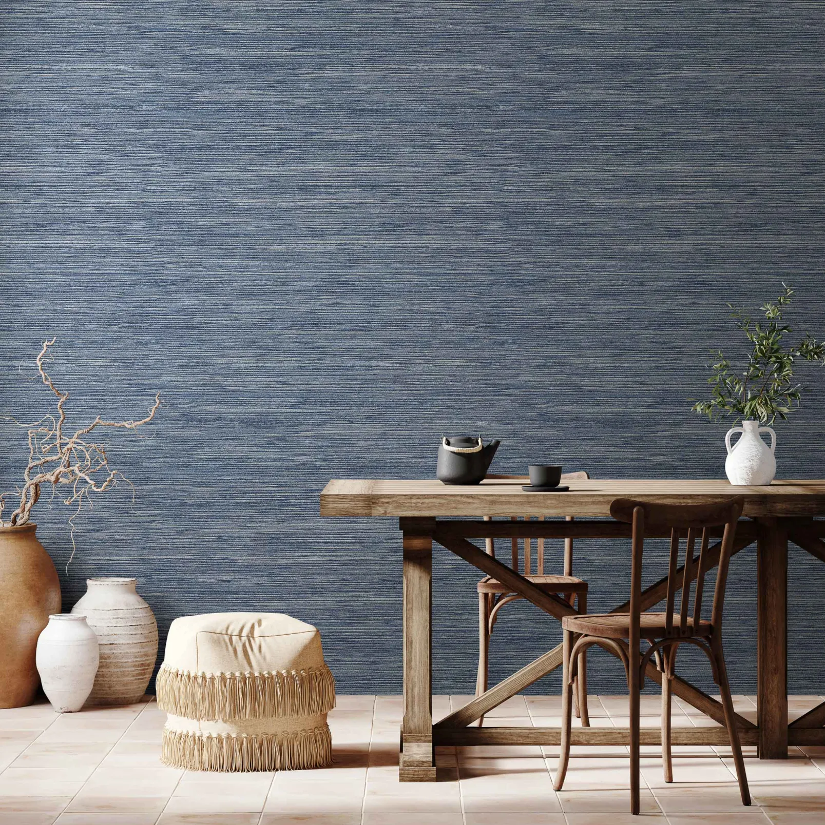 El papel pintado de Coordonné es una textura/material diseñada en tonos azules/marinos de la colección Raffias+.