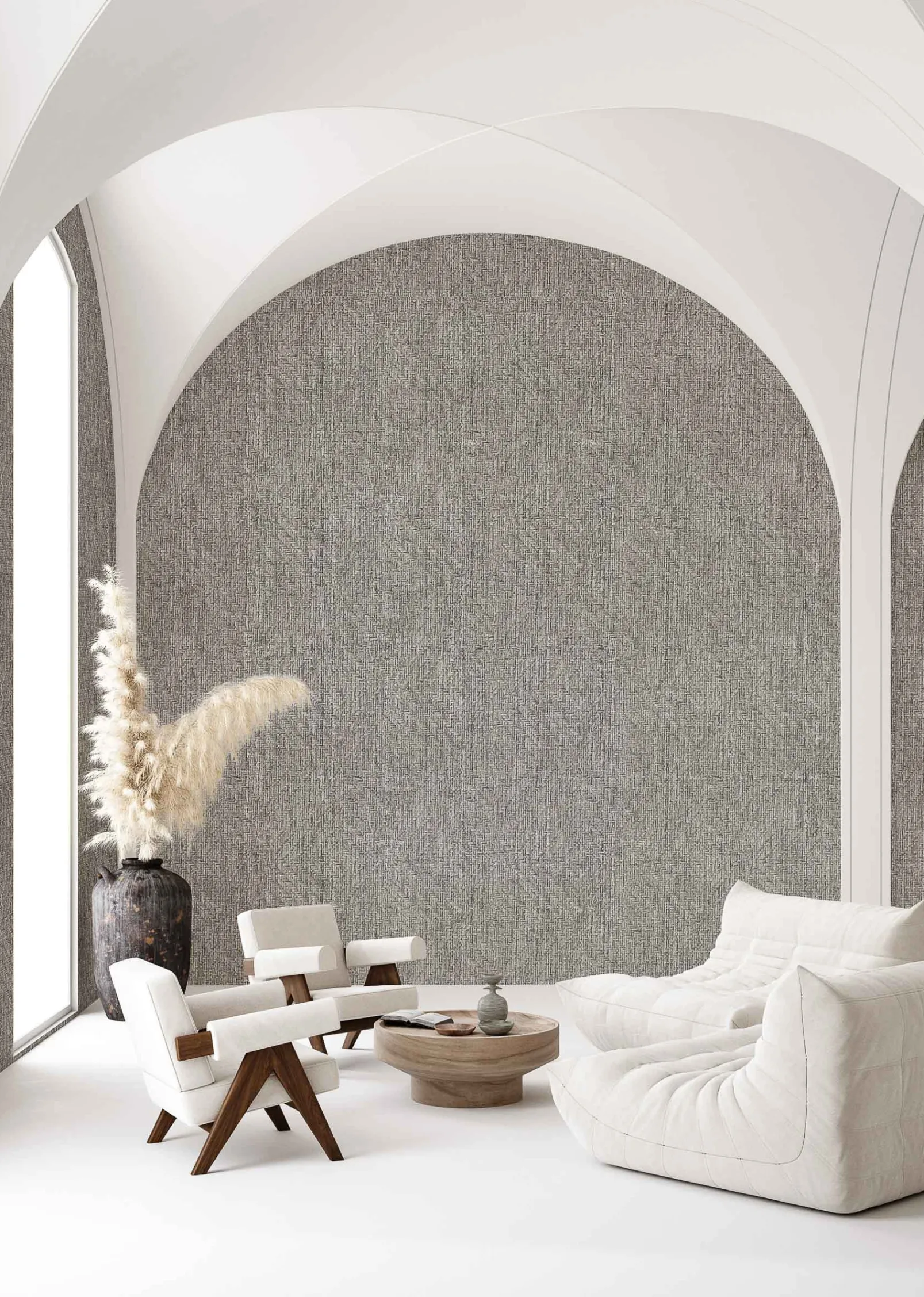 El papel pintado de Coordonné es una textura/material diseñada en tonos marrones de la colección Raffias+.
