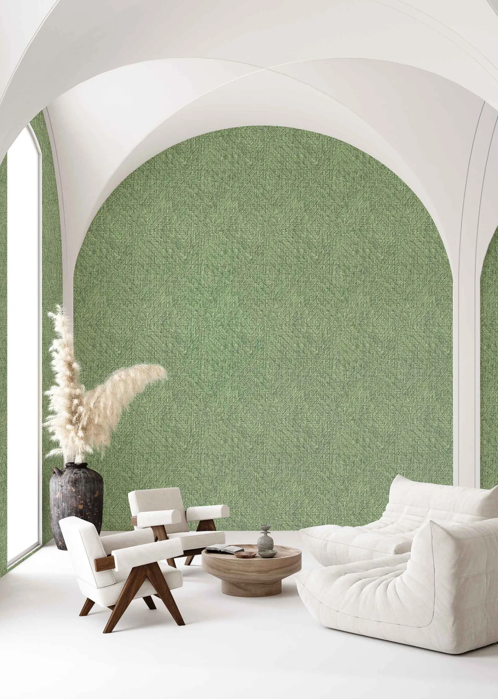 El papel pintado de Coordonné es una textura/material diseñada en tonos verdes de la colección Raffias+.