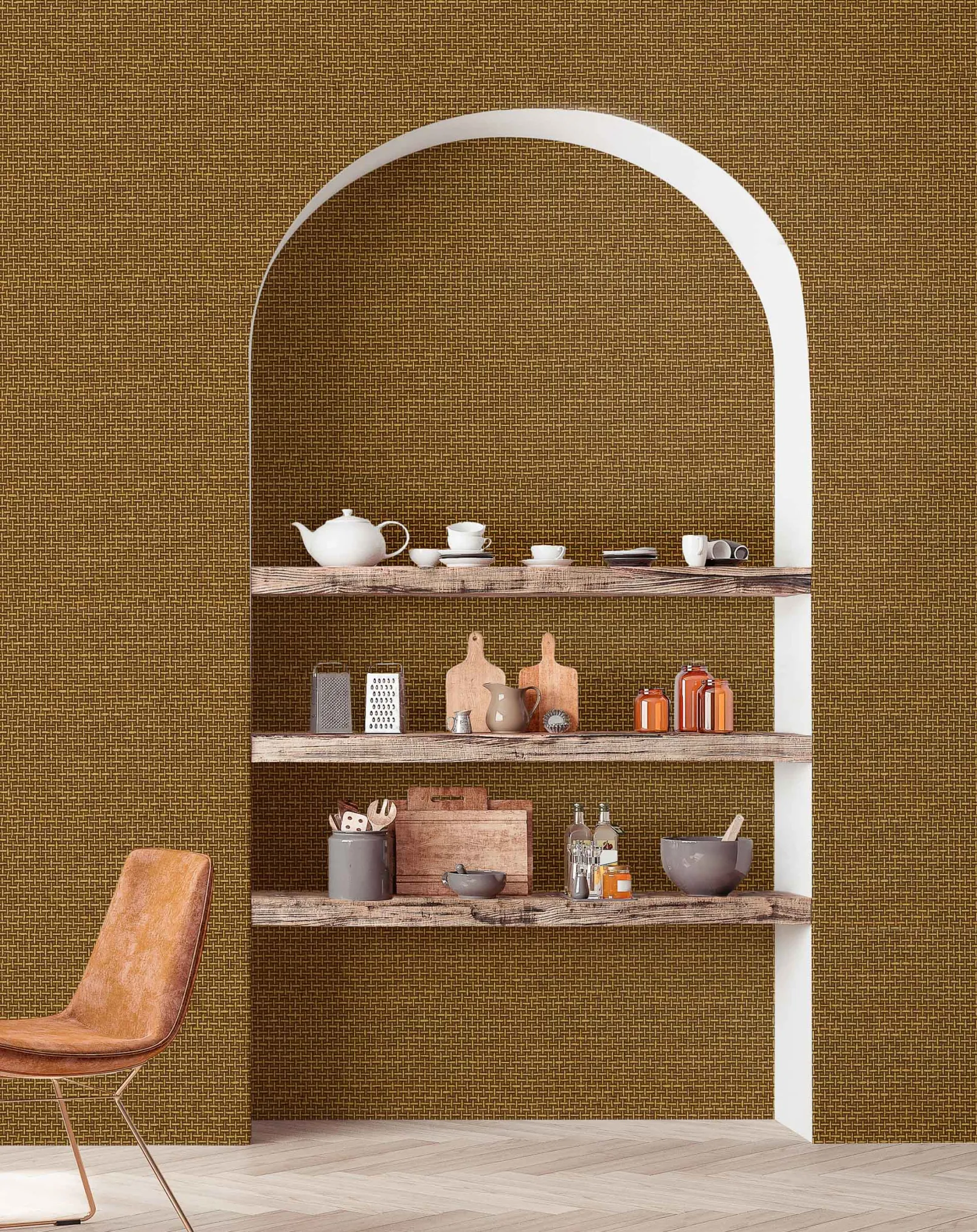 El papel pintado de Coordonné es una textura/material diseñada en tonos marrones de la colección Raffias+.