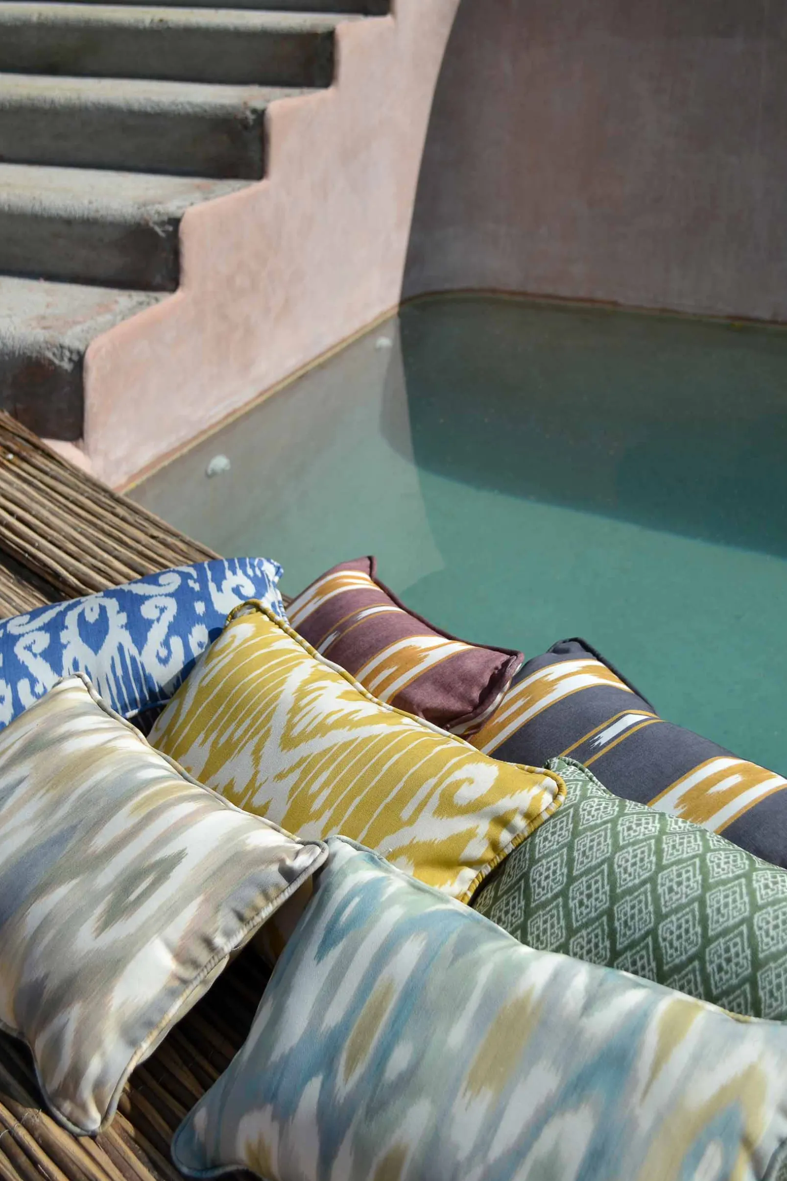 Abr Green de Coordonné es un diseño de texturas en tonos verdes de la colección Ikart Outdoor. Nubes en multitud de formas que flotan por el cielo en sutil armonía.