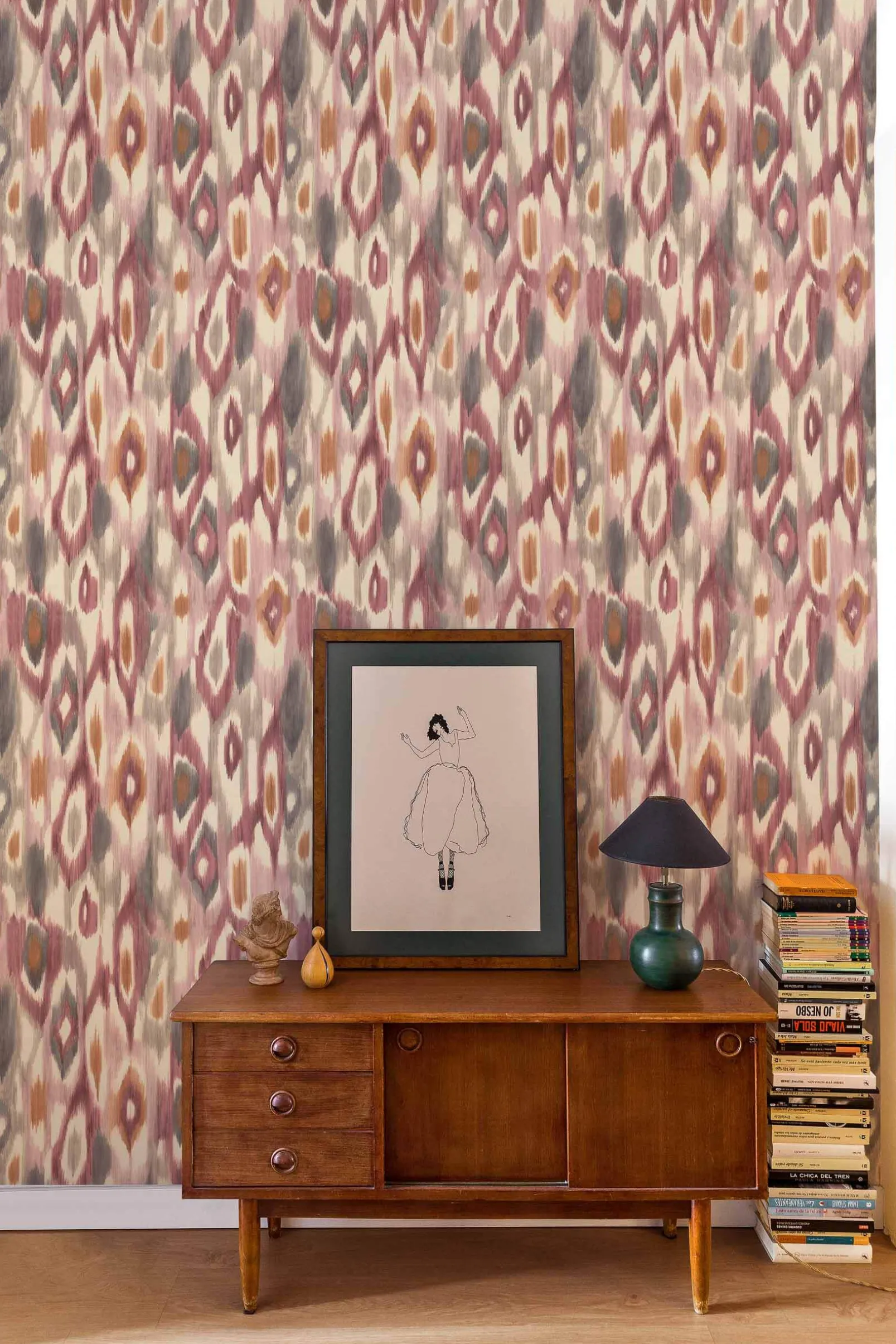 El papel pintado Abr Wine de Coordonné es un diseño de texturas en tonos rojo/vino. Nubes en multitud de formas que flotan por el cielo en sutil armonía.