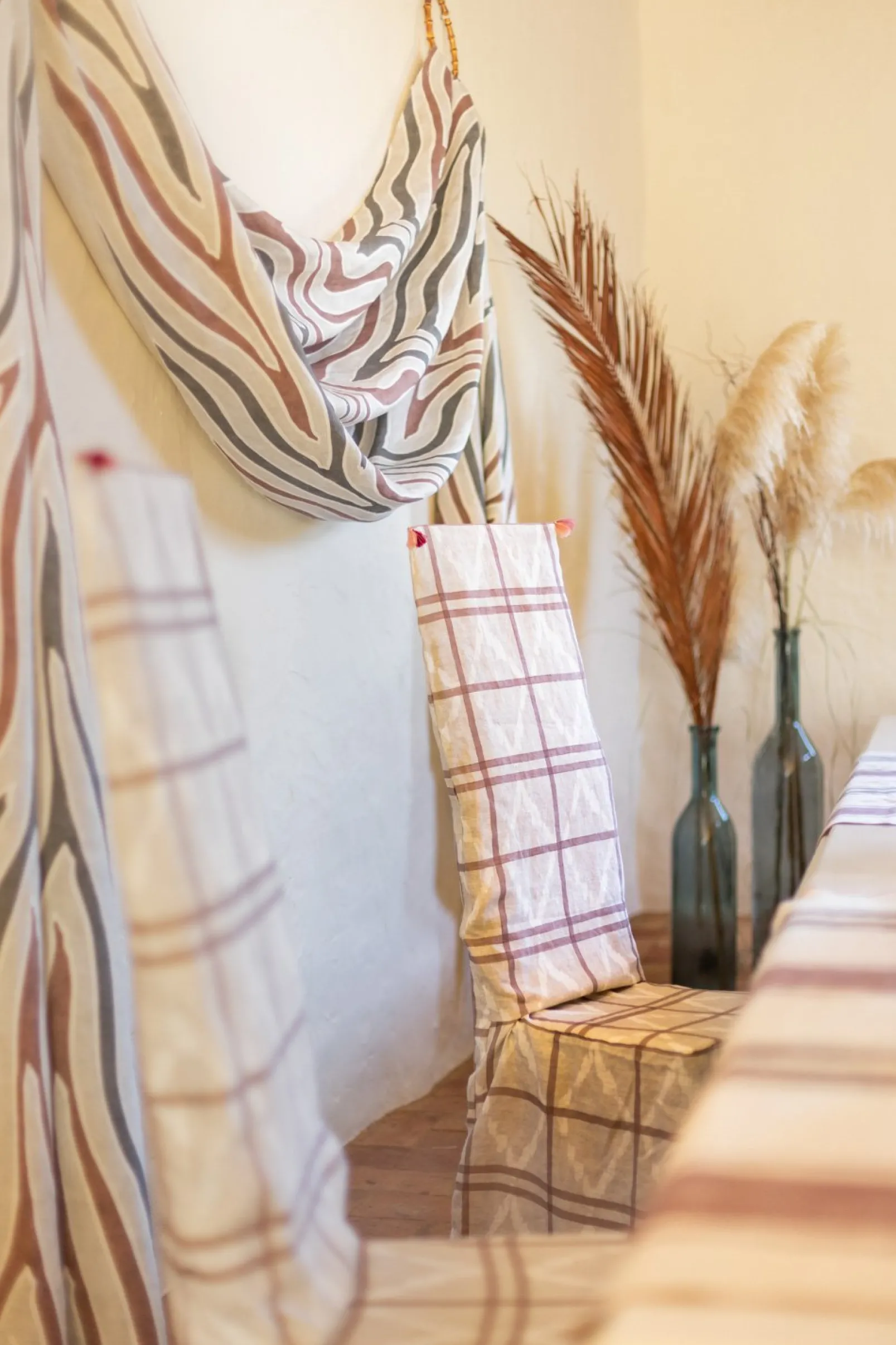 El tejido Afri-kat Adobe de Coordonné es un diseño geométrico en rojo/vino de la colección Maasai.