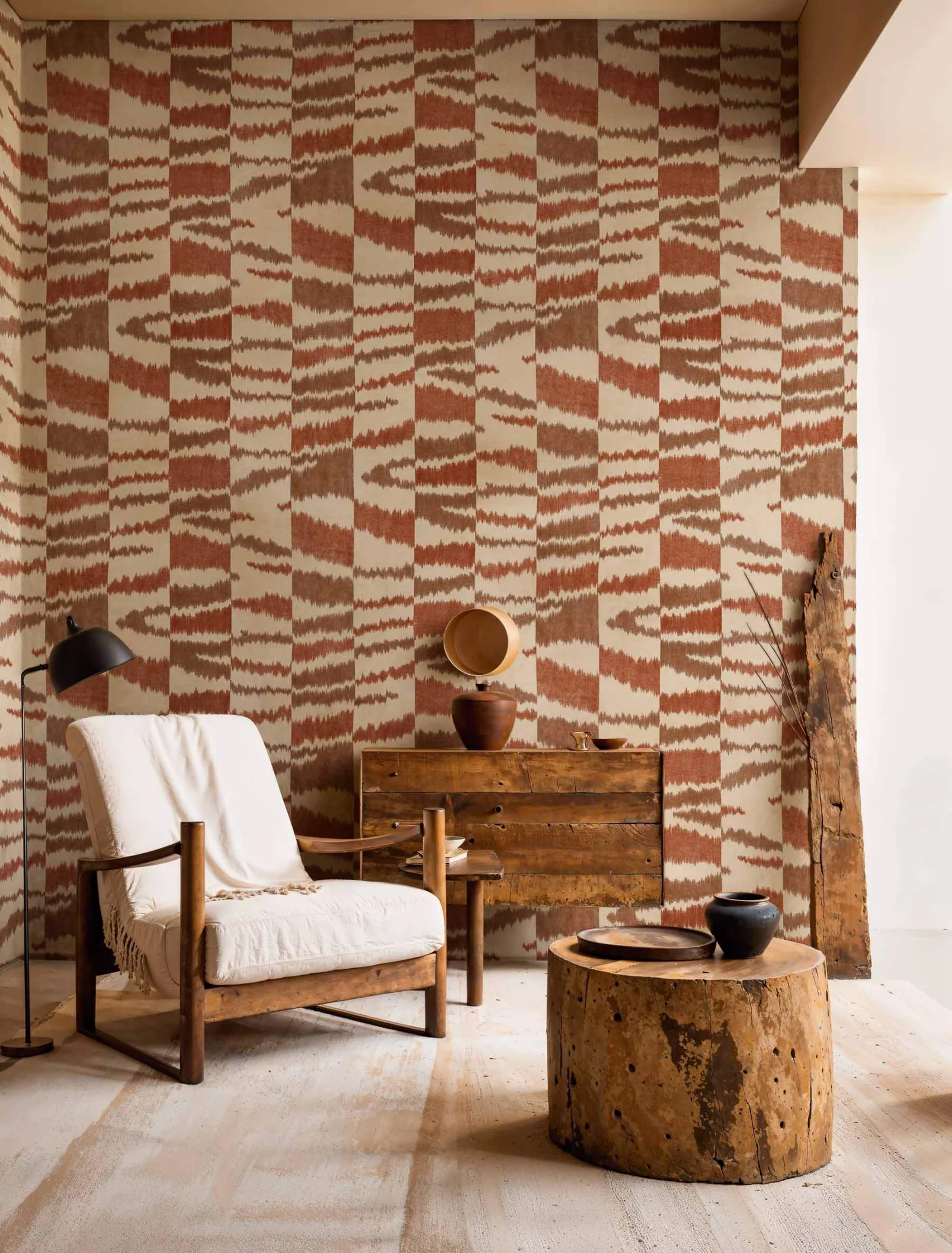 Agafay Desert Clay de Coordonne es un papel pintado inspirado en la textura en tonos marrones de la colección Berber. Elegante conjunto de dunas que inspiró a Yves Saint Laurent en sus diseños.