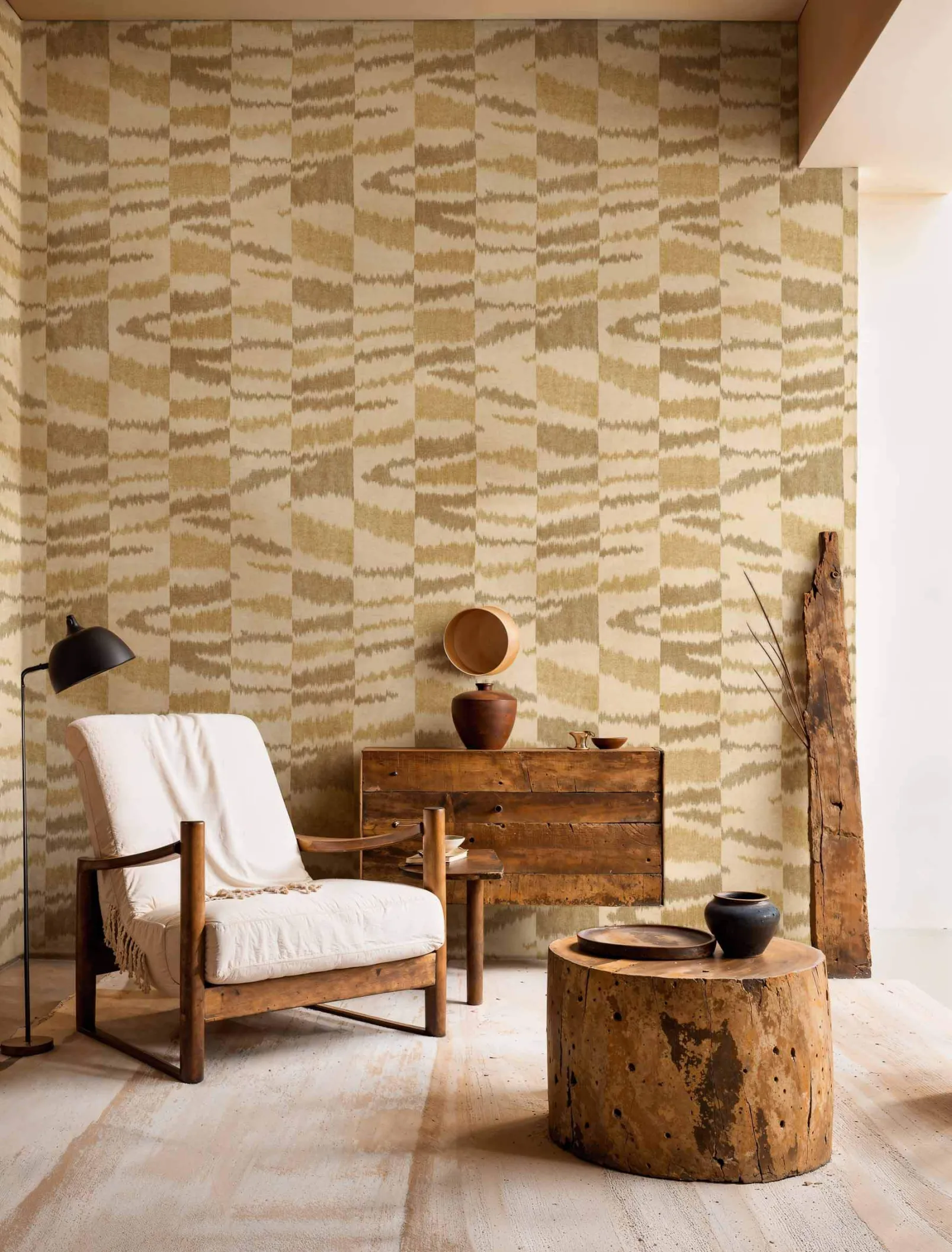 Agafay Desert Sienna de Coordonne es un papel pintado inspirado en la textura en tonos amarillo/naranja de la colección Berber. Elegante conjunto de dunas que inspiró a Yves Saint Laurent en sus diseños.
