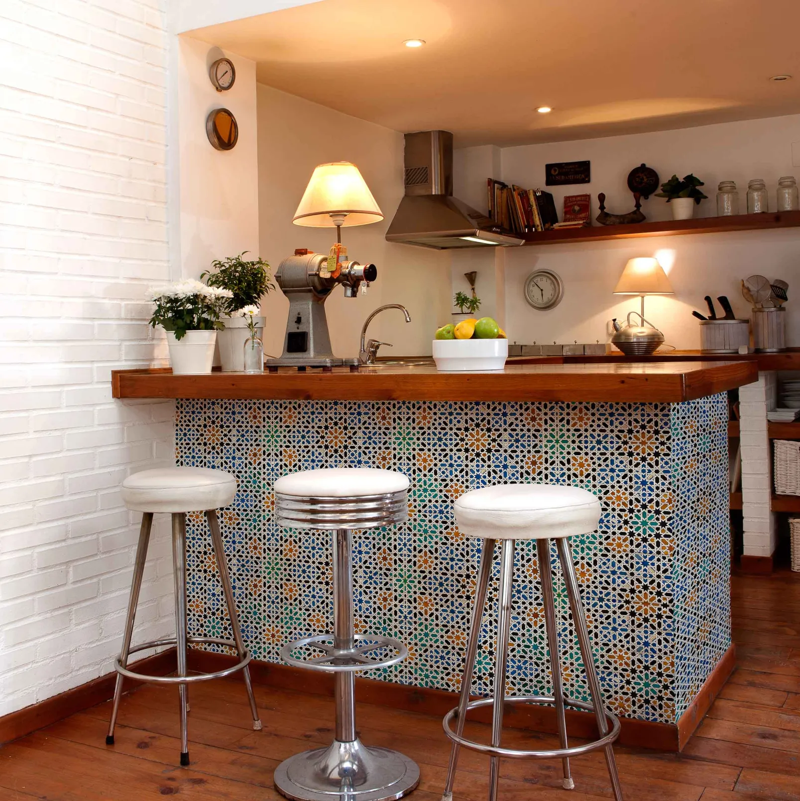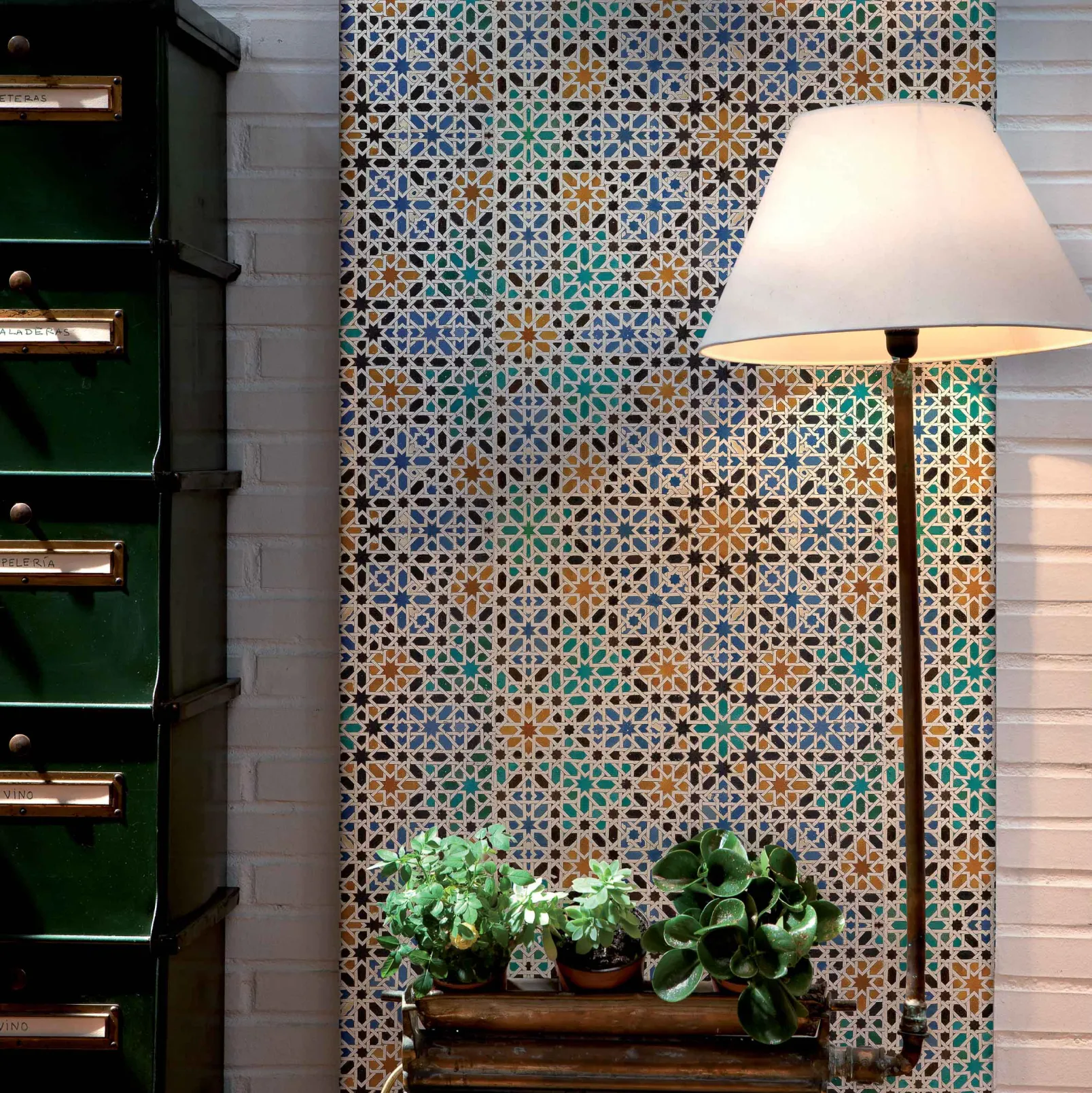 El papel pintado Alandalus de Coordonné es un diseño geométrico en tonos verdes de la colección Tiles.