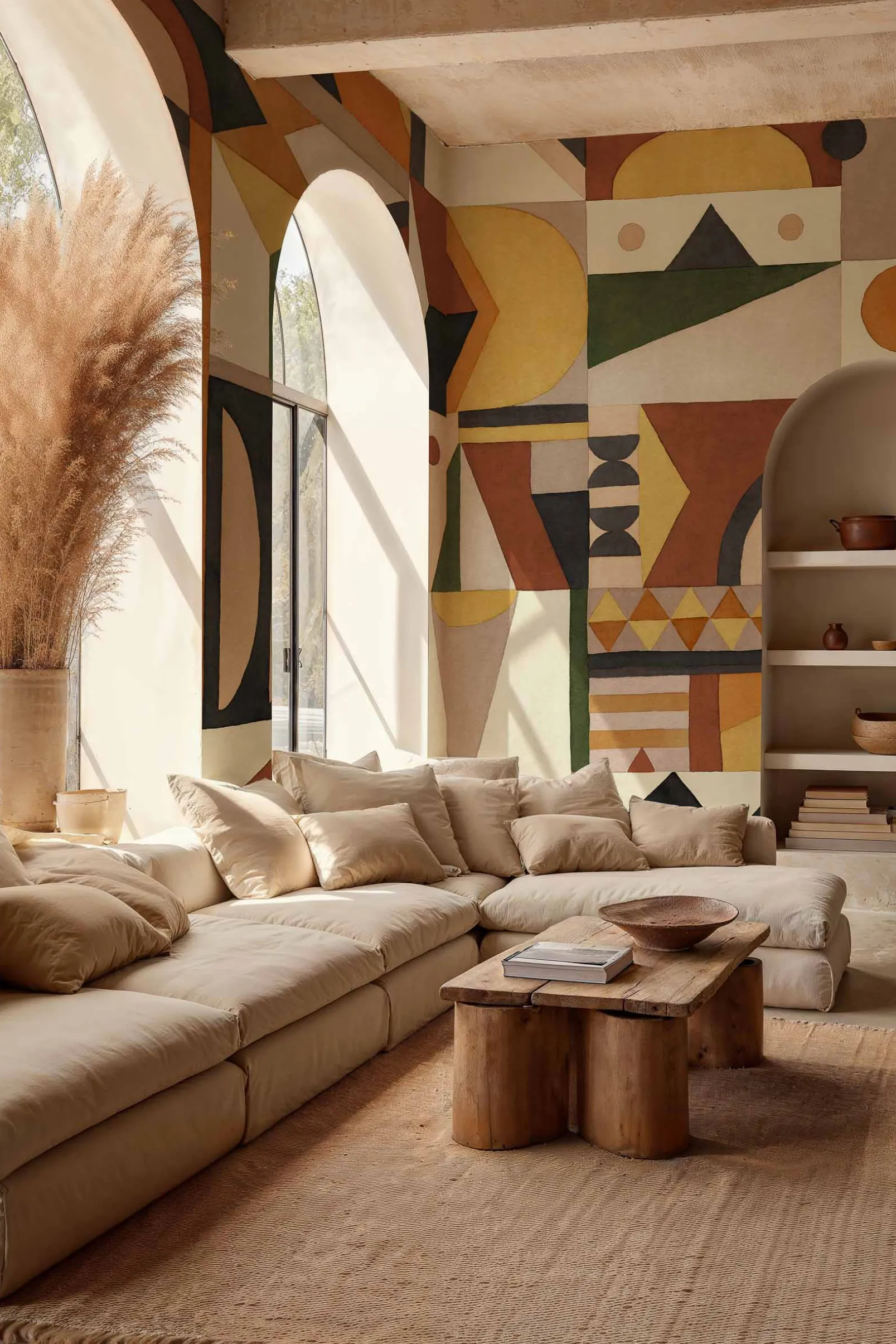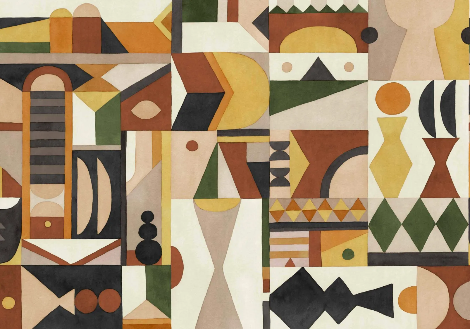 Amasigh Pottery Leaves de Coordonne es un papel pintado de inspiración geométrica en tonos verdes de la colección Berber. Colección de piezas de barro ensambladas en formato tapiz.