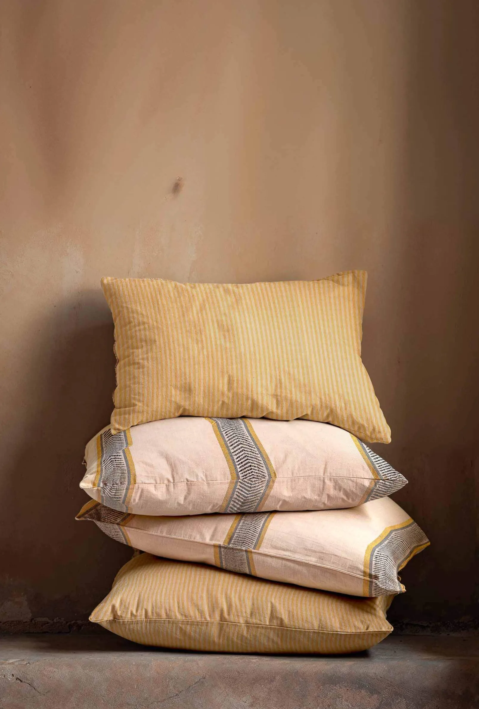 Animal Stripe Curry de Coordonné es un diseño de rayas en amarillo/naranja de la colección Berber II.La frescura de una línea ancha tejida en forma de cebra.