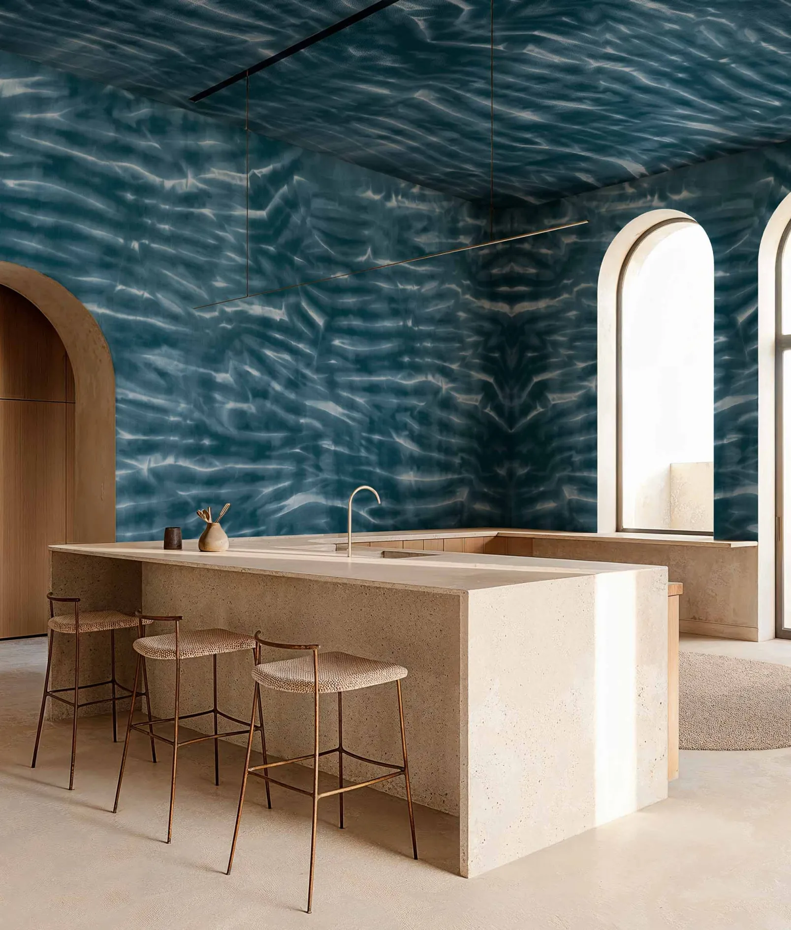 Arashi Indigo de Coordonné es un diseño Texturas en azul/azul marino de la colección Shibori. El agradable vaivén del agua en movimiento.