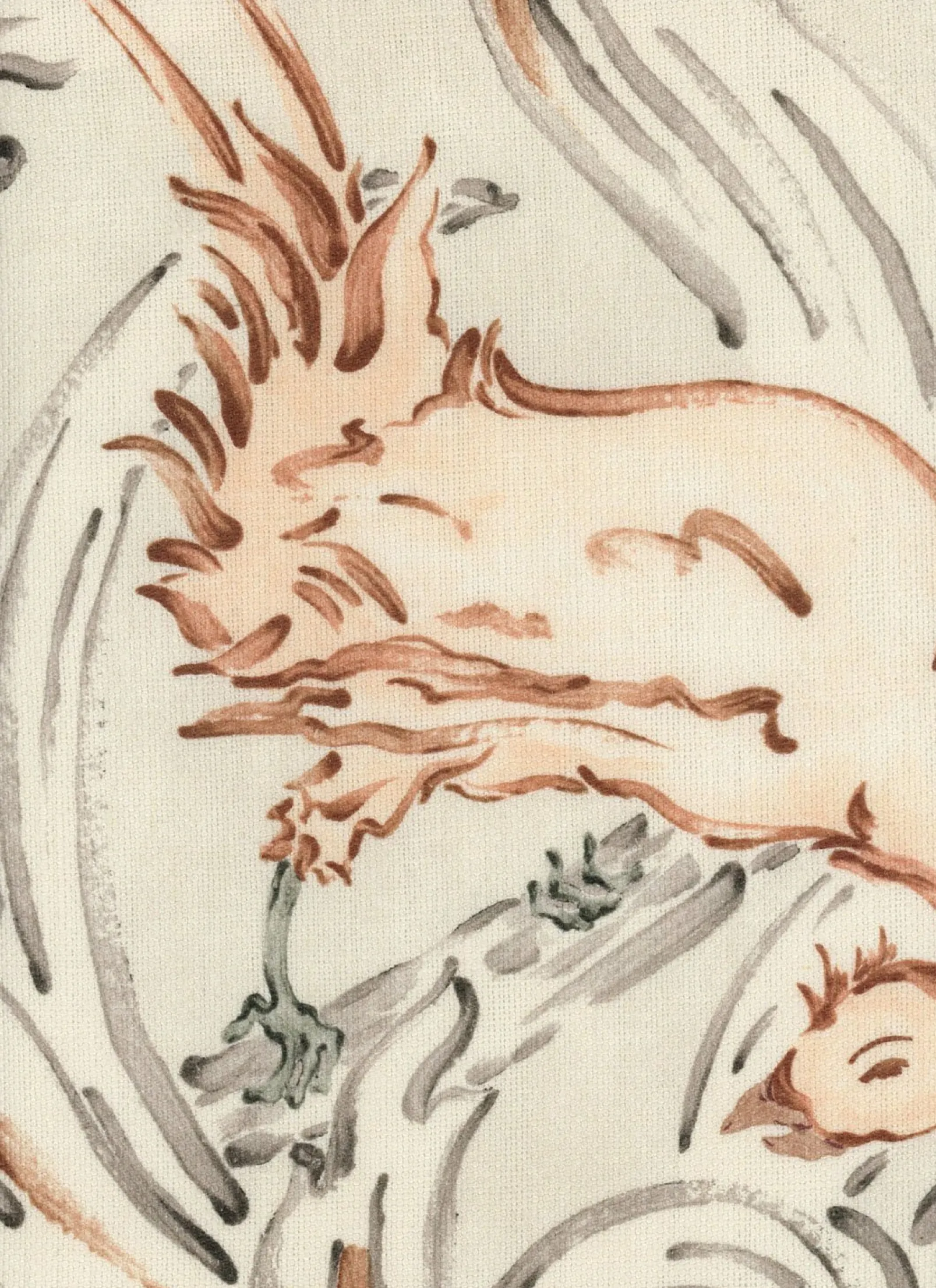 La tela Aves Siena de Coordonné es un diseño de animales en blanco/gris de la colección Indiano.