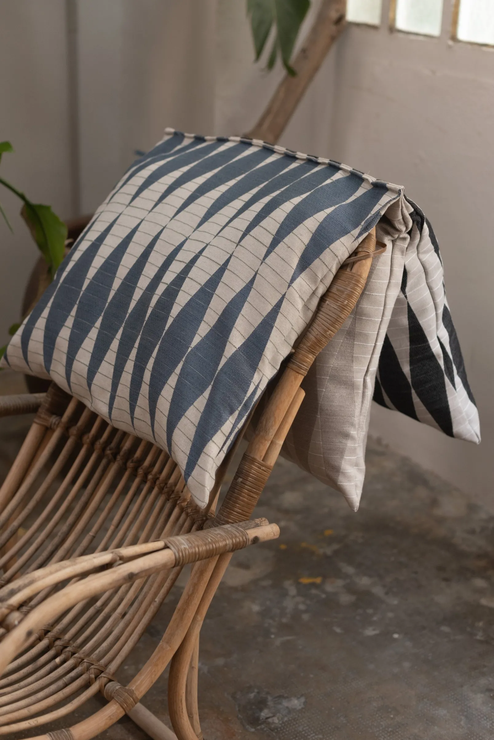 La tela Backgammon Añil de Coordonné es un diseño geométrico en azul/azul marino de la colección Maasai.
