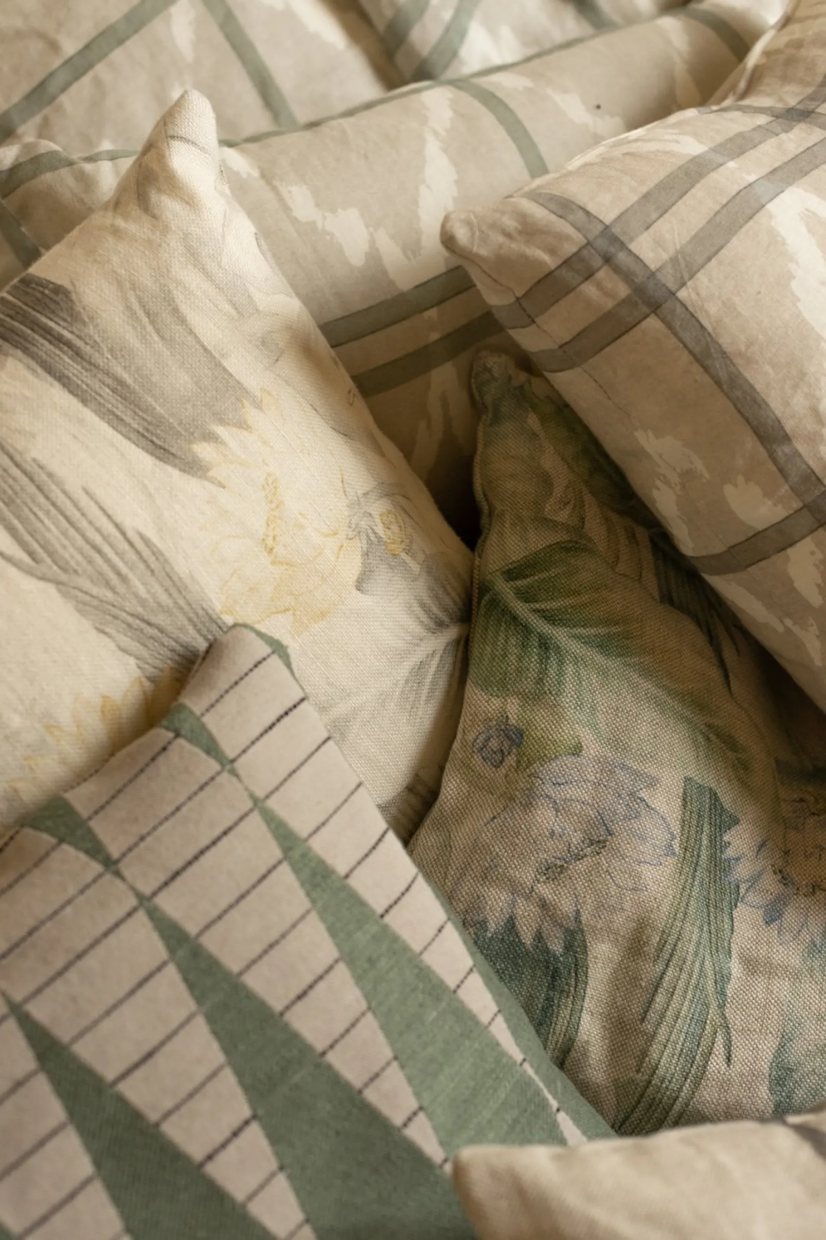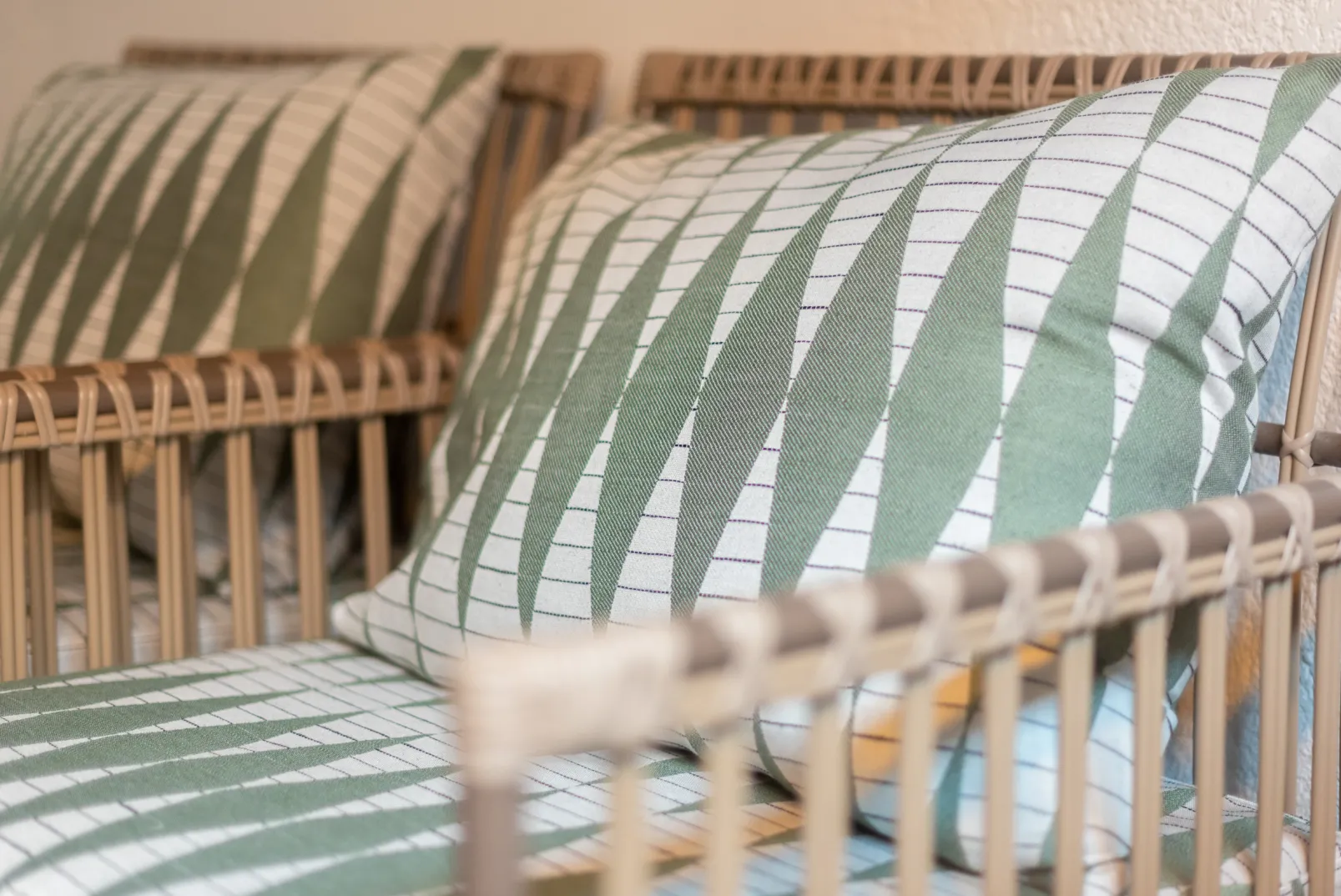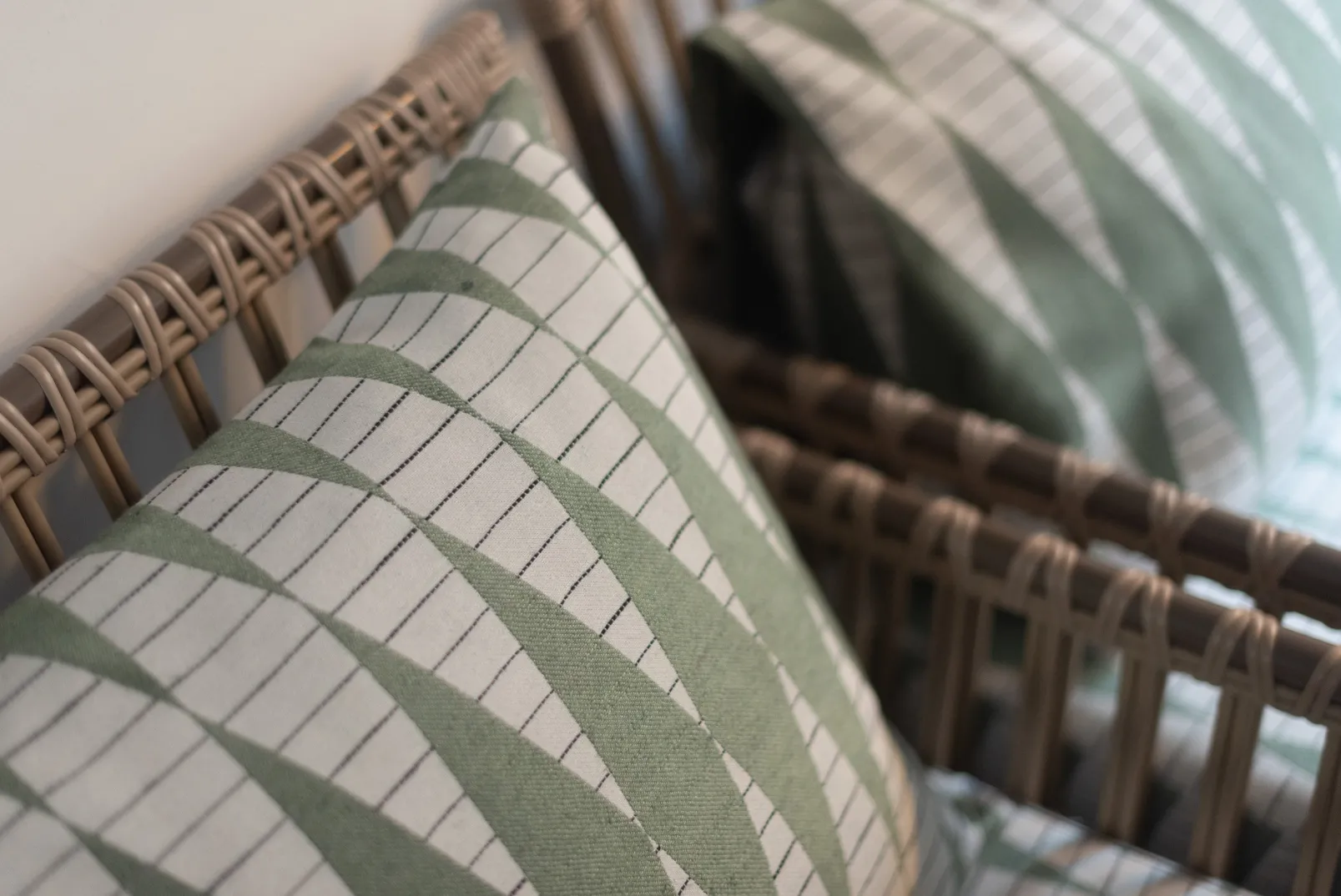 El tejido Backgammon Menta de Coordonné es un diseño geométrico en verde de la colección Maasai.