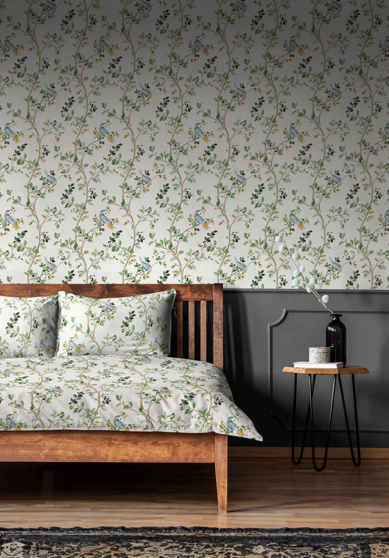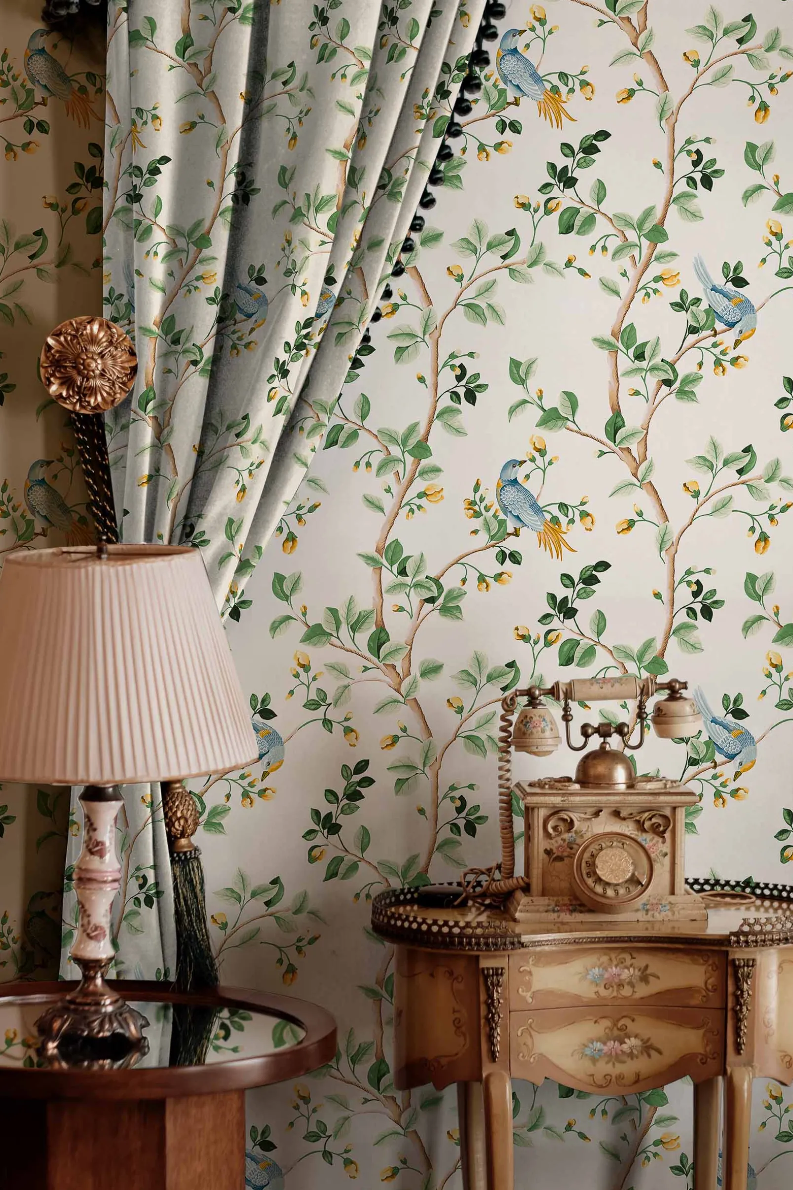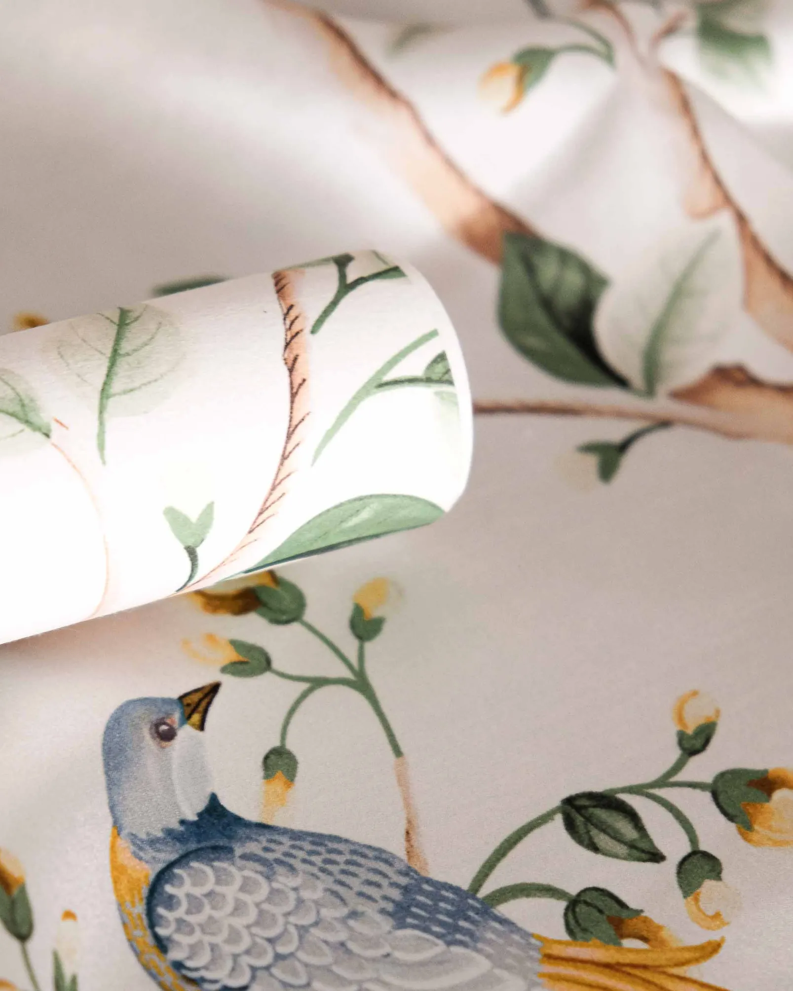 La tela Birds Prosperity Swan de Coordonné es un diseño de animales en blanco/azul de la colección Forbidden City Fabrics.
