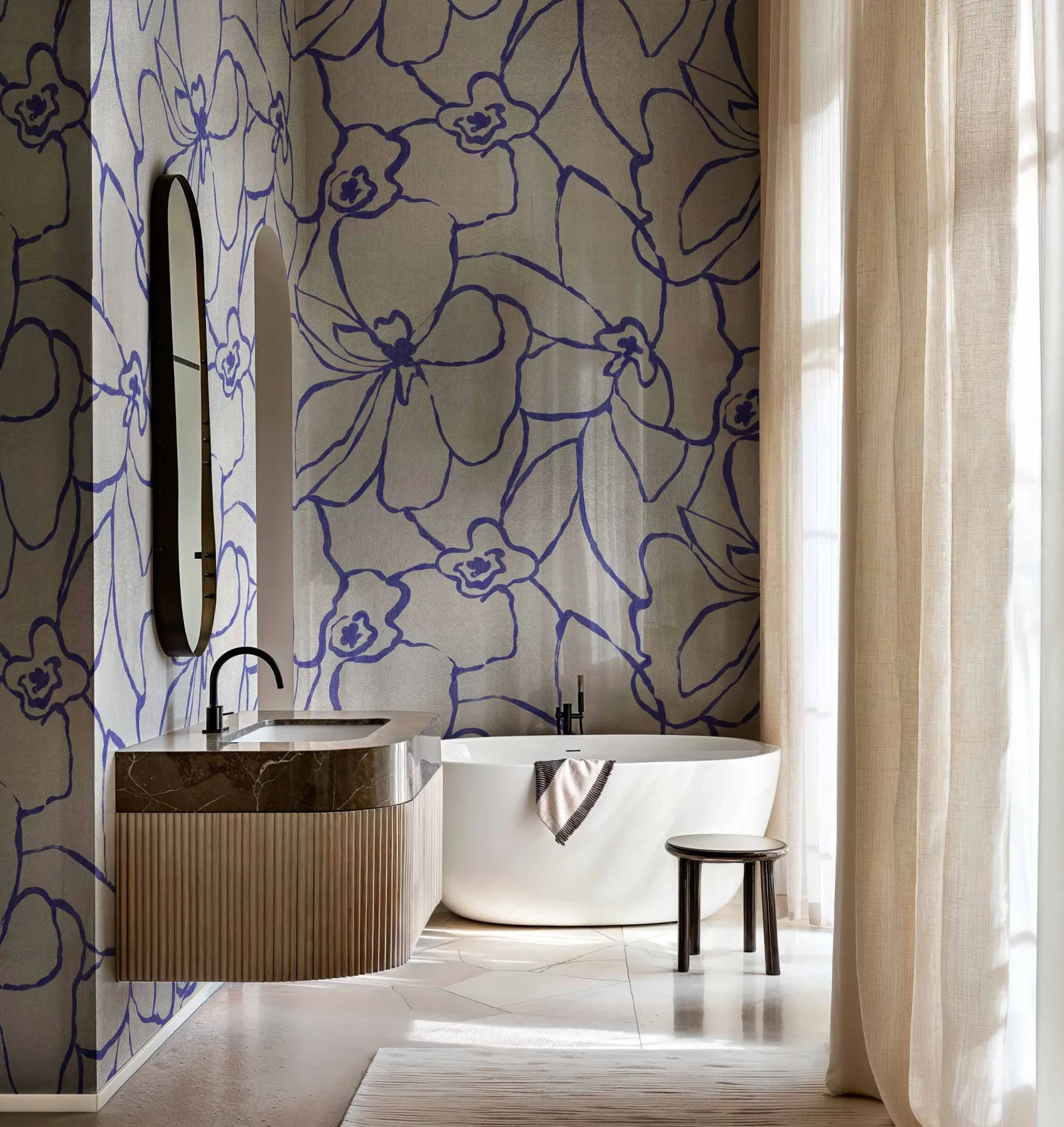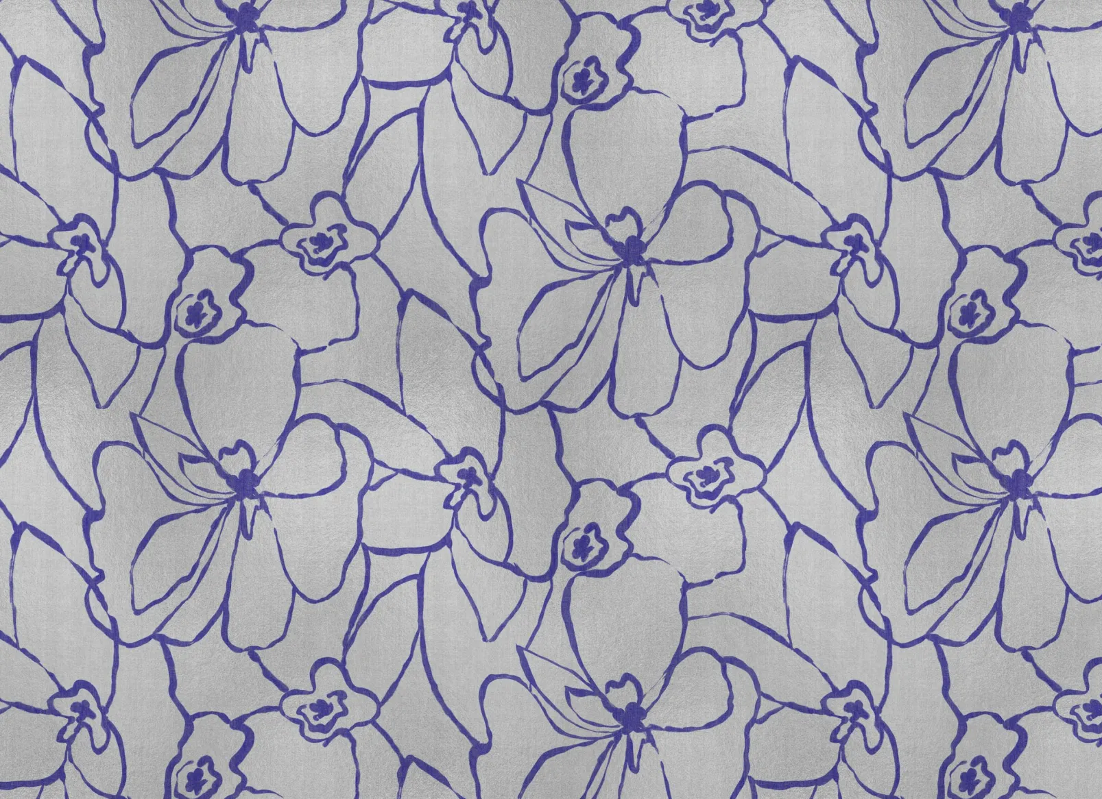 Blooming Silver de Coordonné es un diseño floral en blanco/gris de la colección Random Metallics II. Un amanecer floreciente de pétalos que despiertan en primavera.