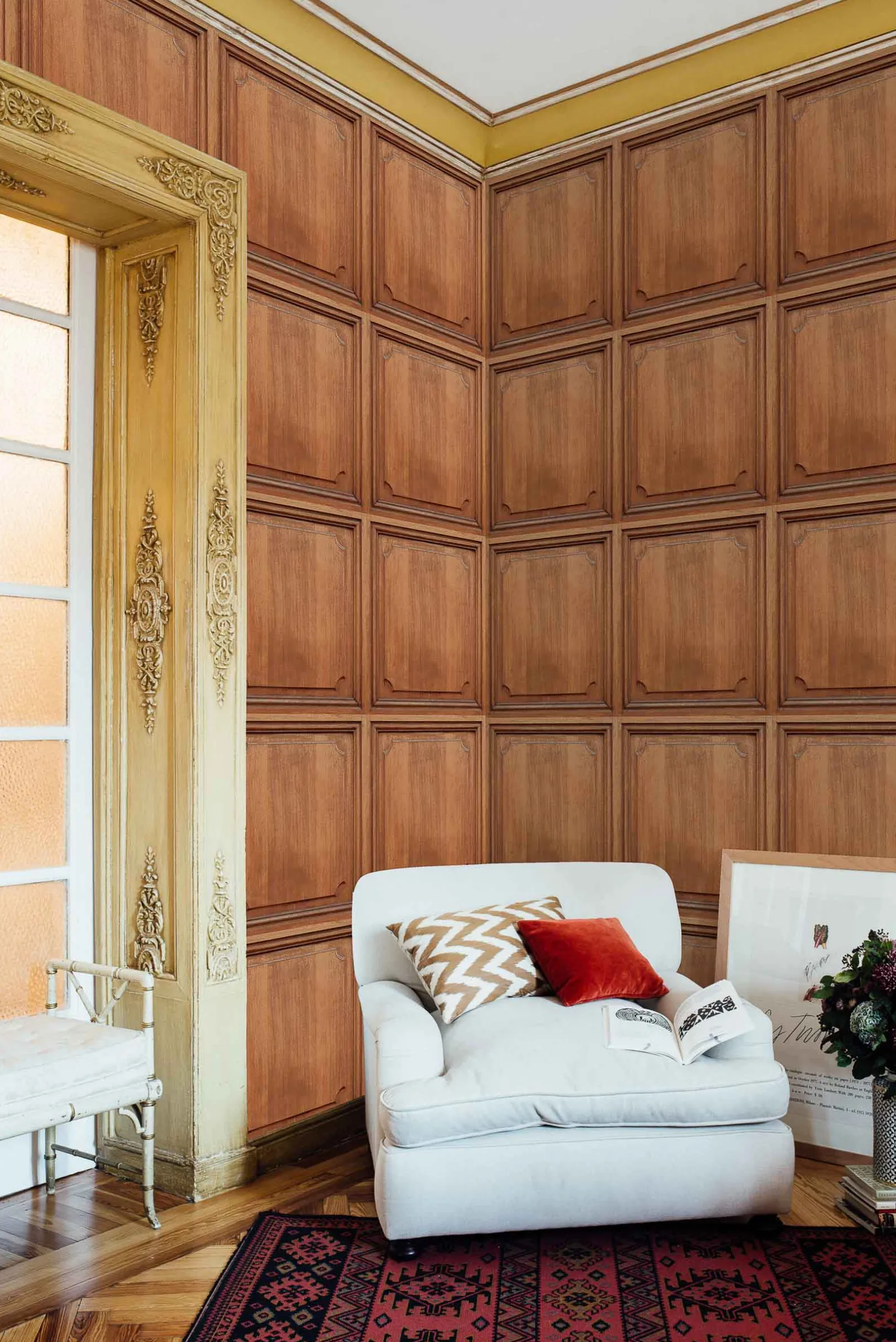 El papel pintado Boiserie Goji de Coordonné es una textura/material diseñada en tonos marrones de la colección Random Chinoiseries.