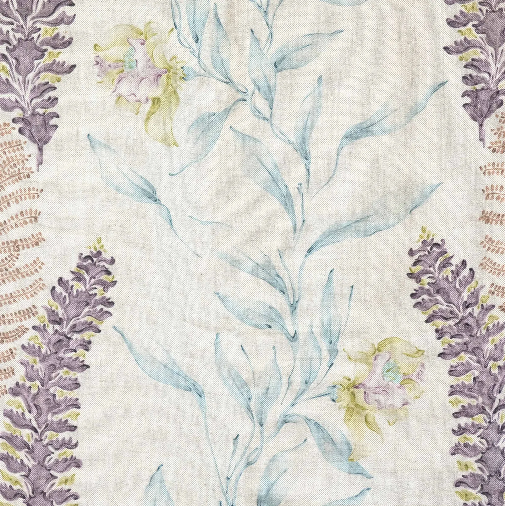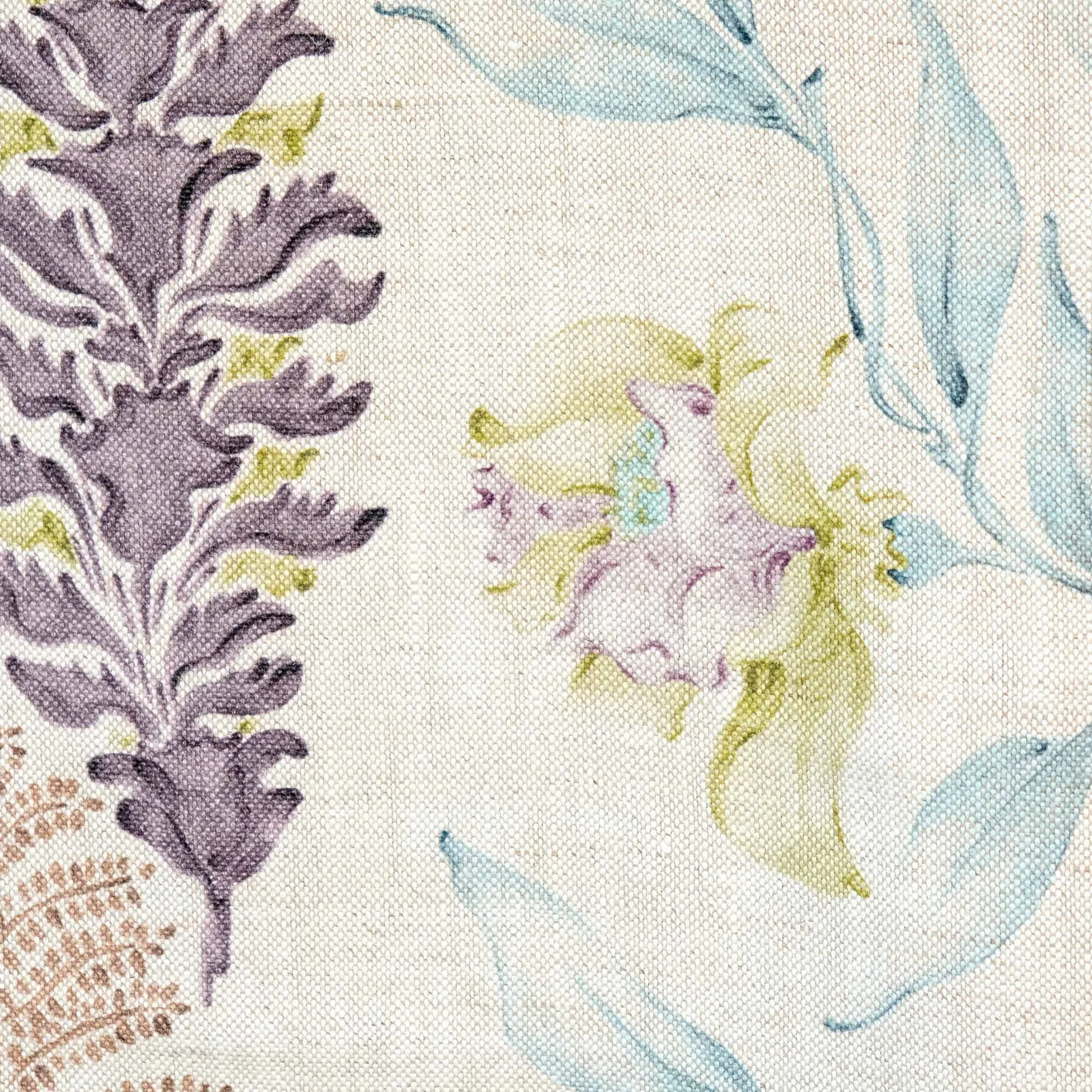 La tela Botánica Pistacho de Coordonné es un diseño vegetal en rosa/lila de la colección Toscana.