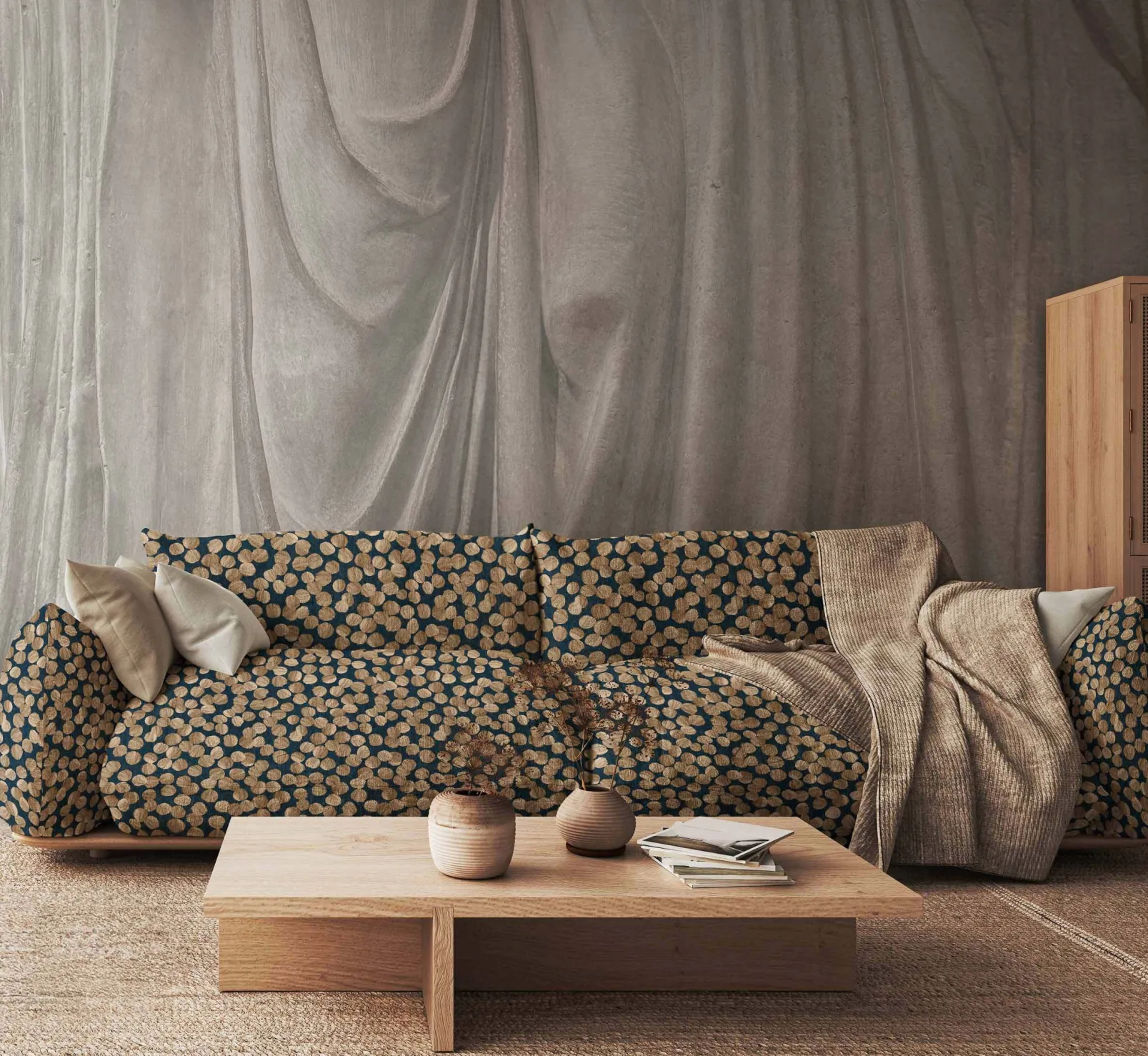 Brush Lapislazuli de Coordonné es un diseño inspirado en Texturas en Azul/Azul Marino de la colección Artisan Fabrics. Un juego de formas y libertad. Puntos realzados por sutiles pinceladas en una disposición dinámica.