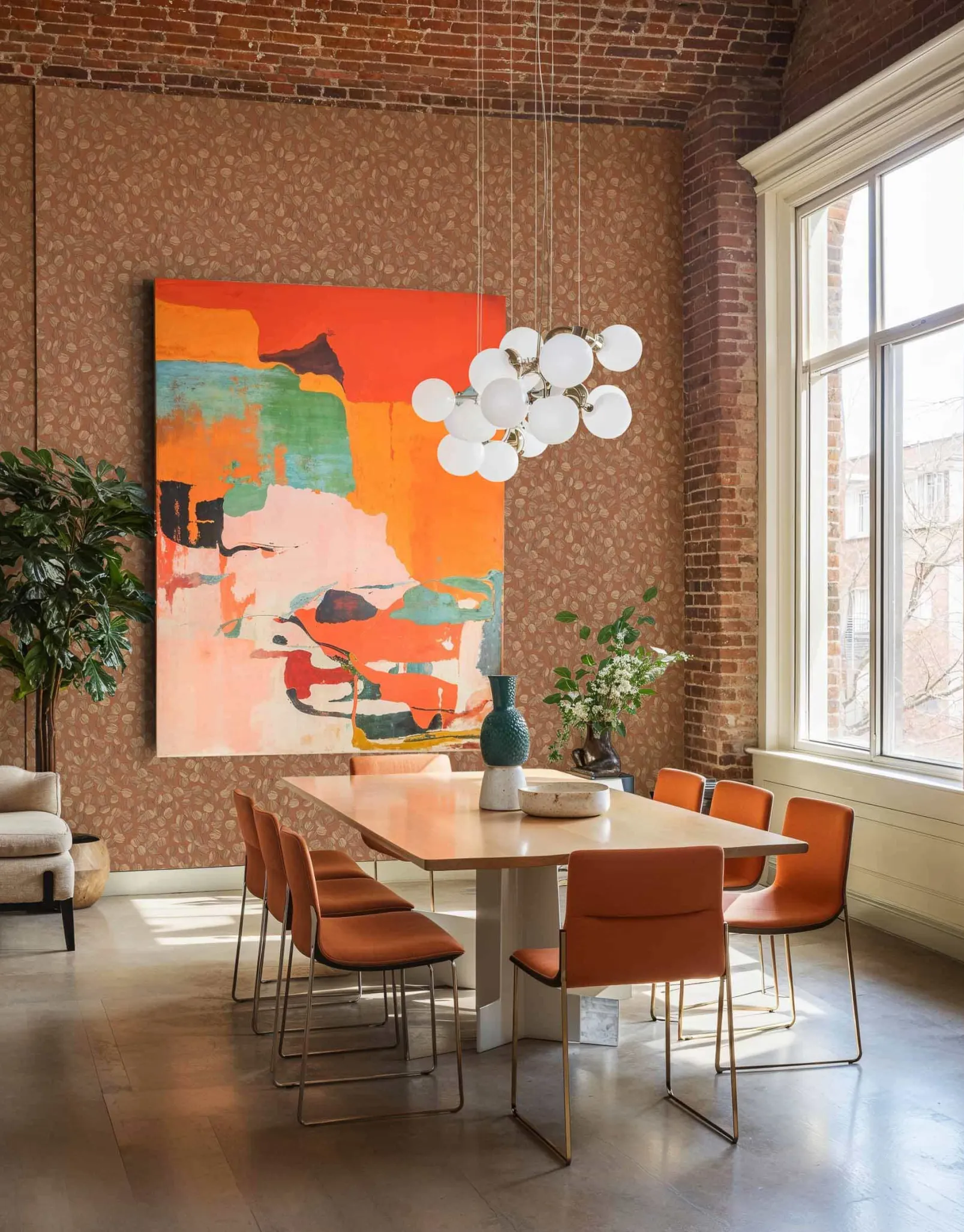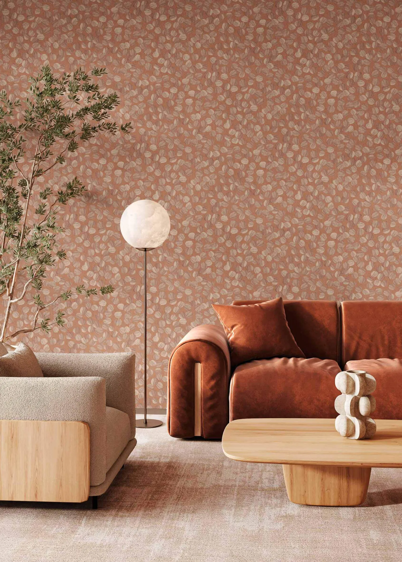 Brush Rose de Coordonné es un papel pintado de inspiración geométrica en tonos rosa/lila.