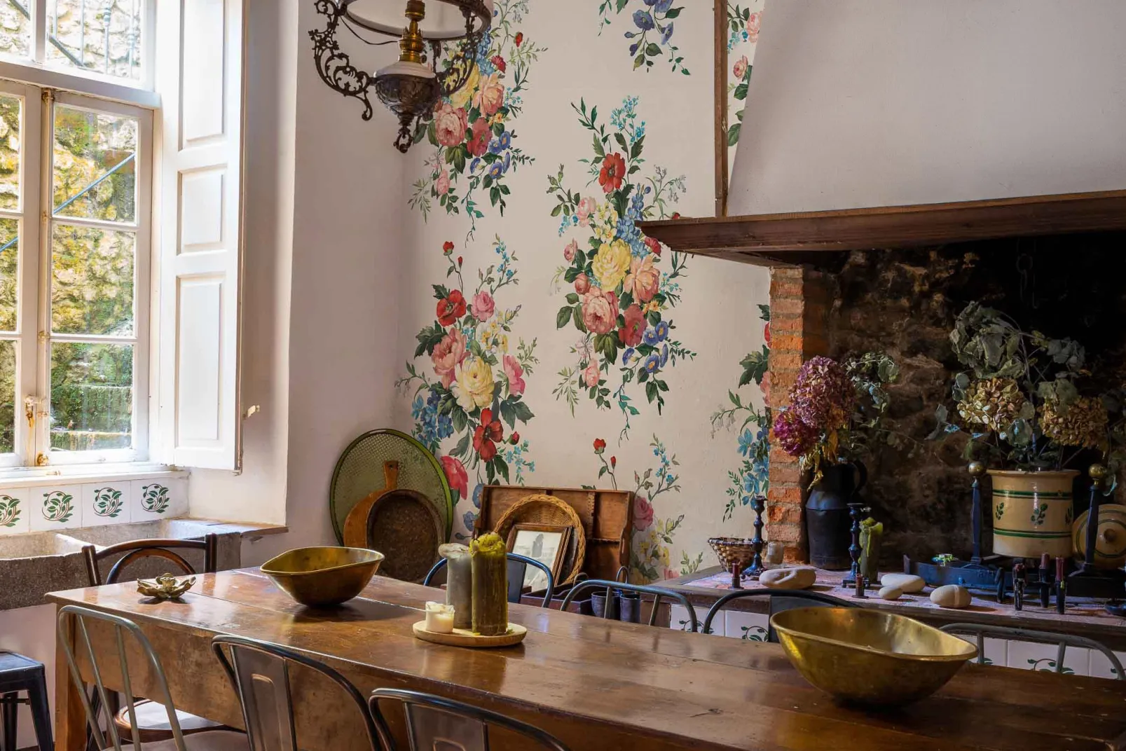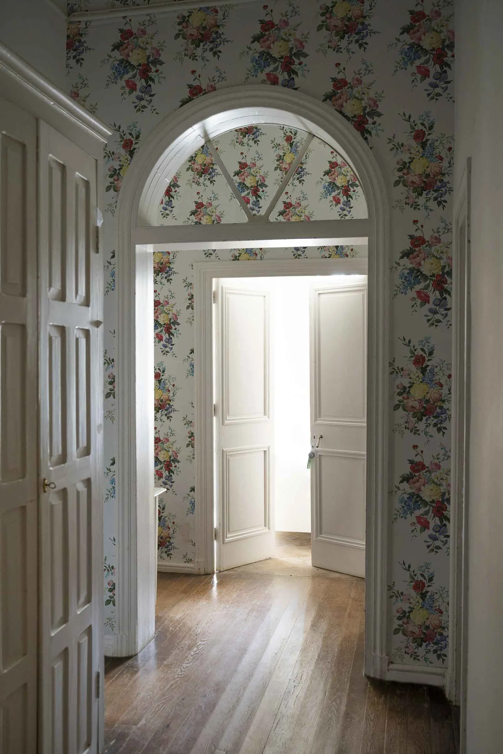 Carmen Cisne de Coordonné es un diseño floral en blanco/gris de la colección Feria. Ramo de flores silvestres explosivas.