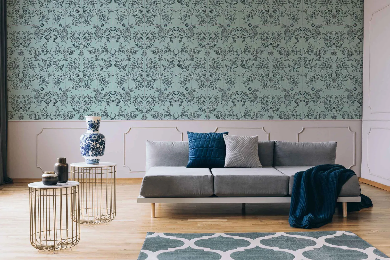 El papel pintado Cerâmica Aqua de Coordonné es un papel vegetal diseñado en tonos azul/marino de la colección Wander.