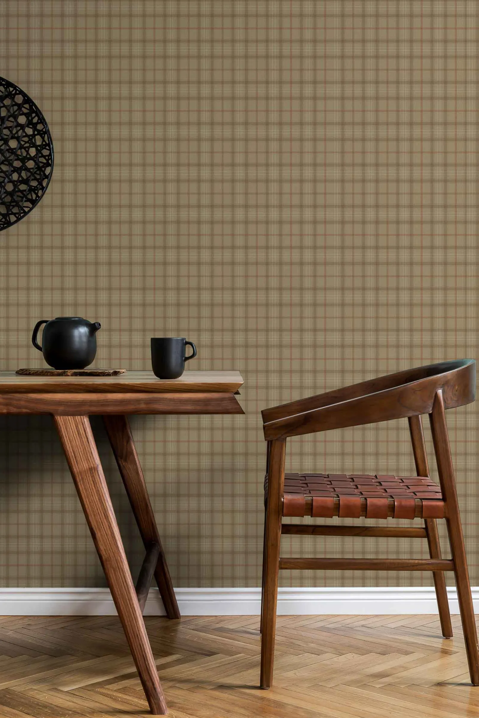 El papel pintado Check Brown de Coordonné es un diseño de rayas en tonos marrones de la colección Tartan.