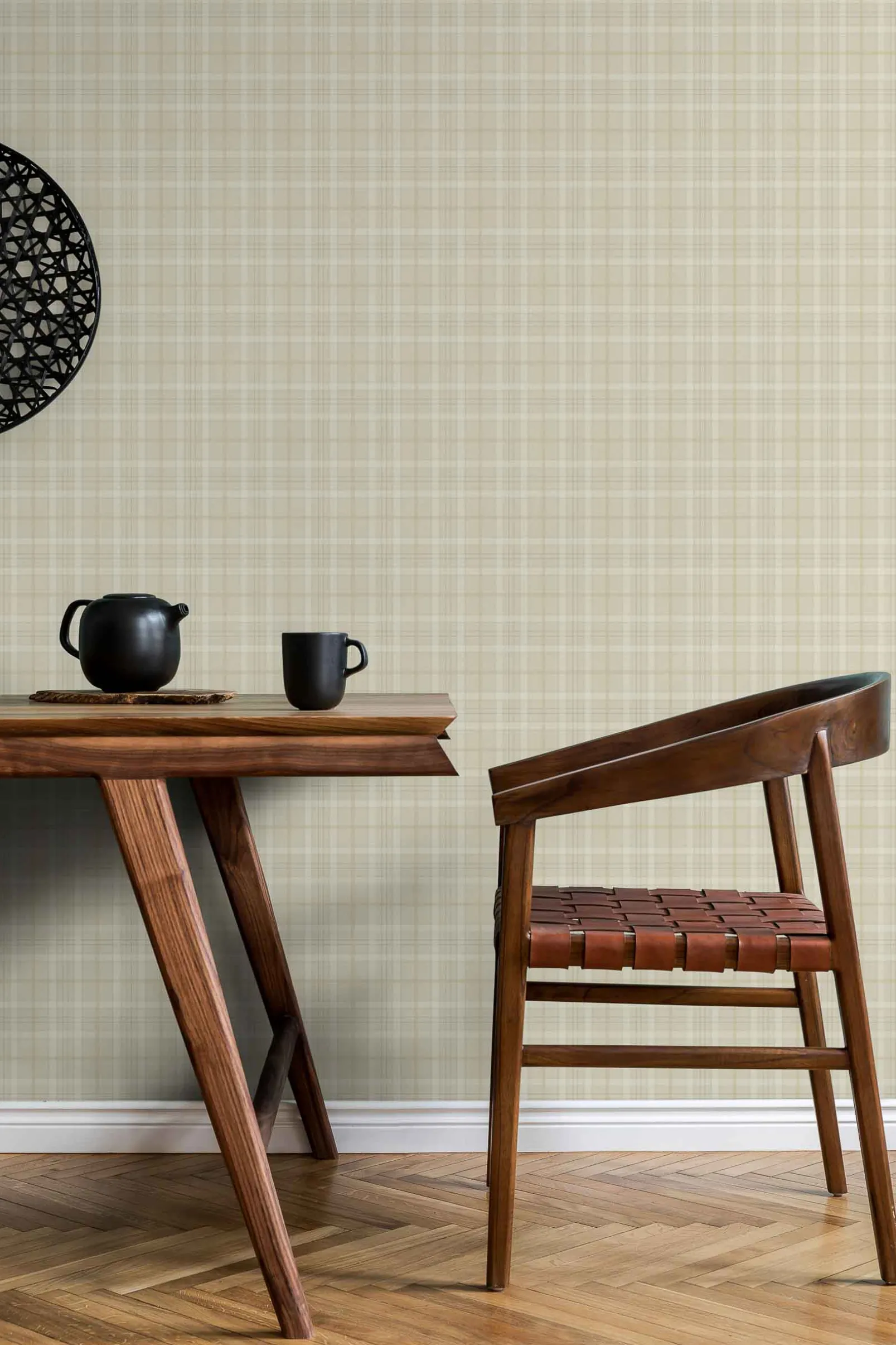 El papel pintado Check Ivory de Coordonné es un diseño de Rayas en tonos Beige/Nude de la colección Tartan.