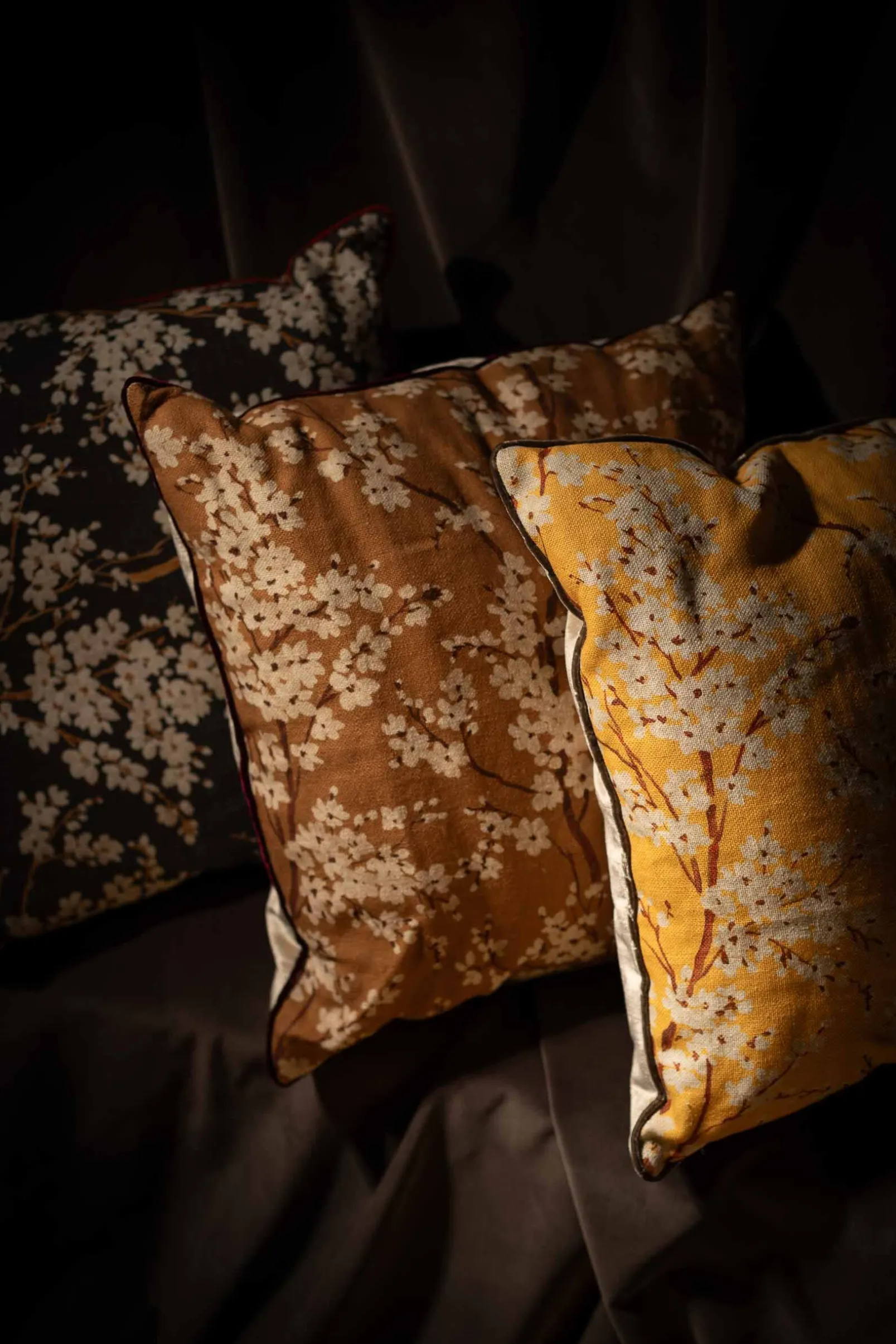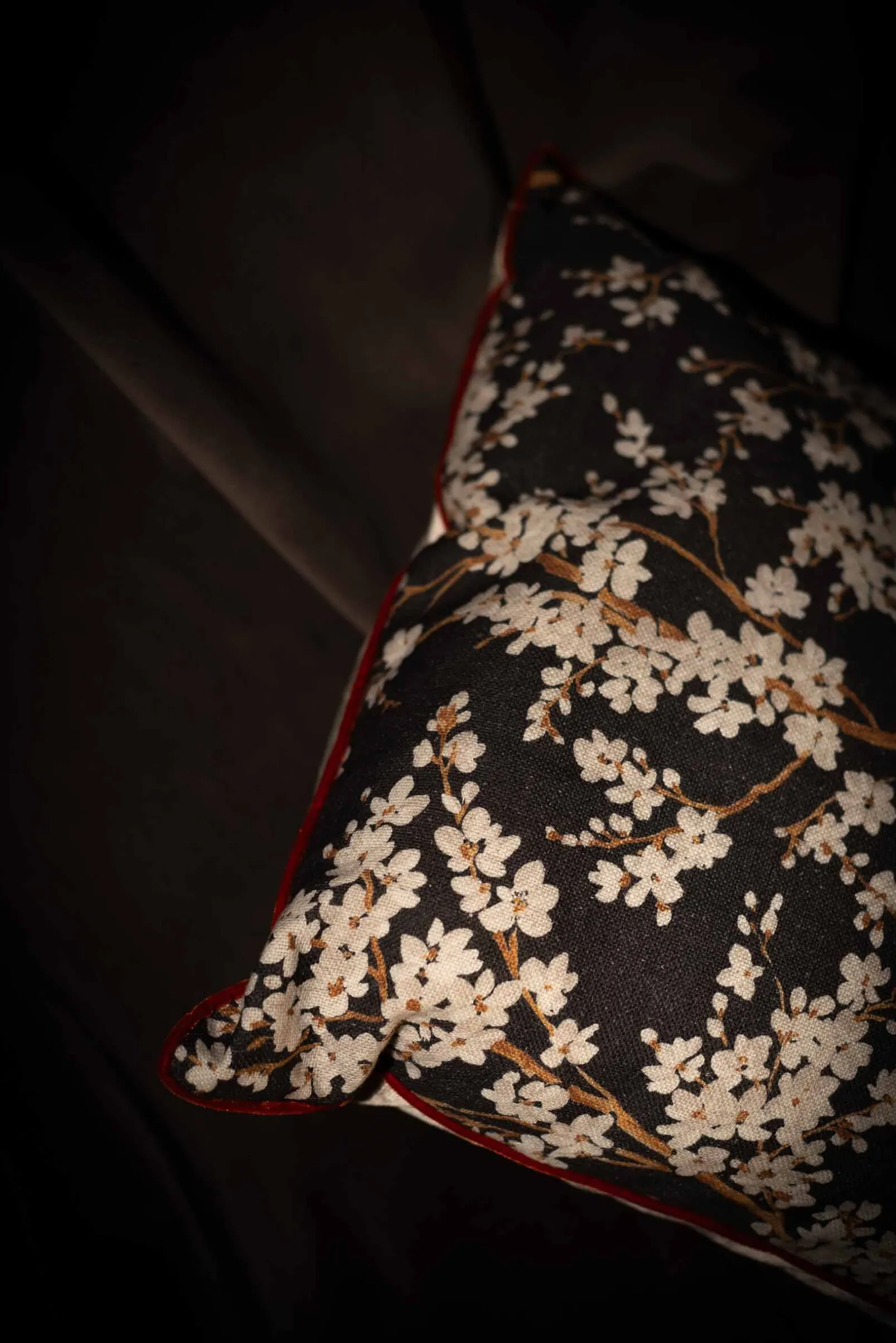 Cherry Blossom Onyx de Coordonné es un diseño de inspiración floral en negro de la colección Forbidden City. Reverso en terciopelo liso tono nácar.