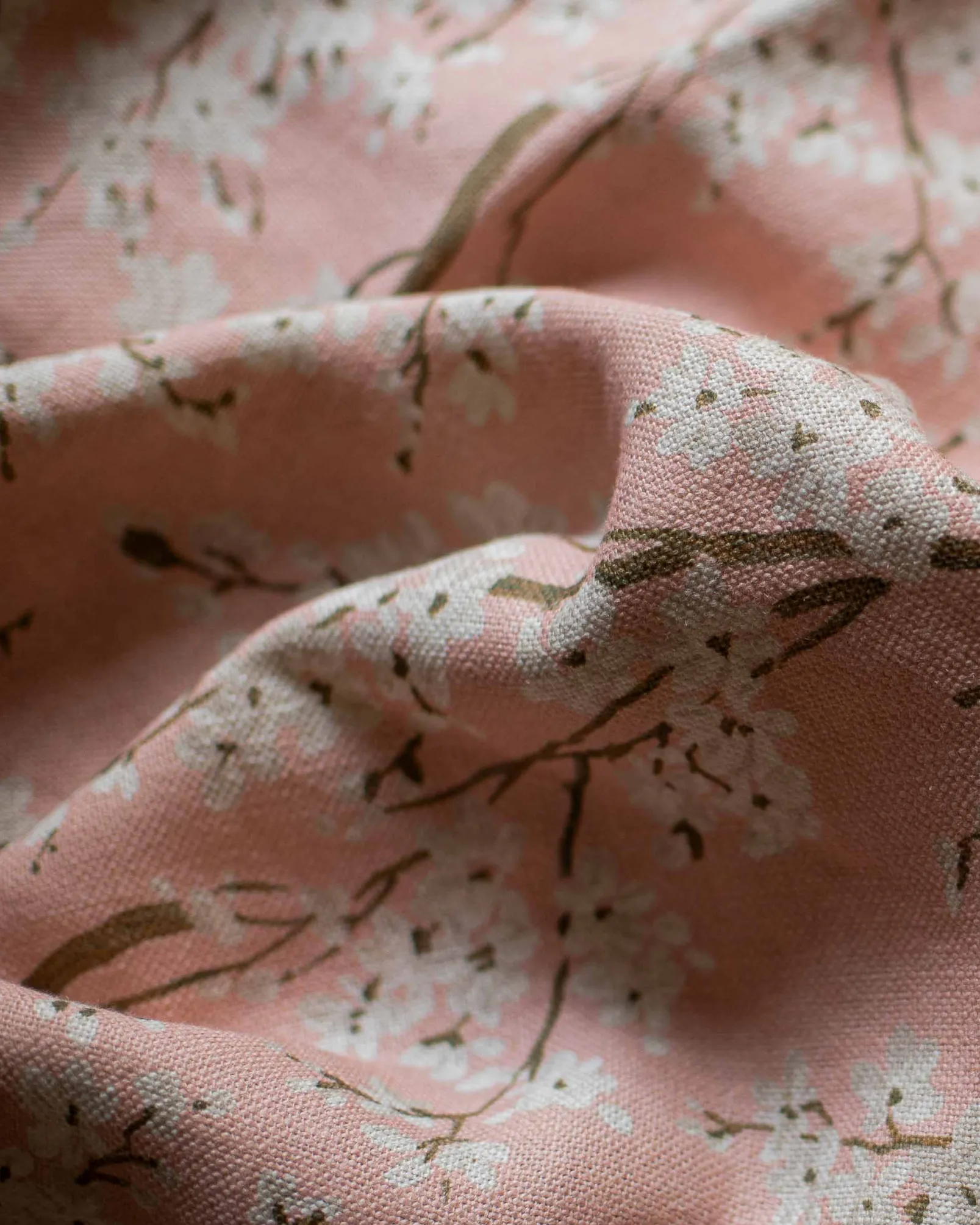 El tejido Cherry Blossom Rose de Coordonné es un diseño floral en rosa/blanco de la colección Forbidden City Fabrics.