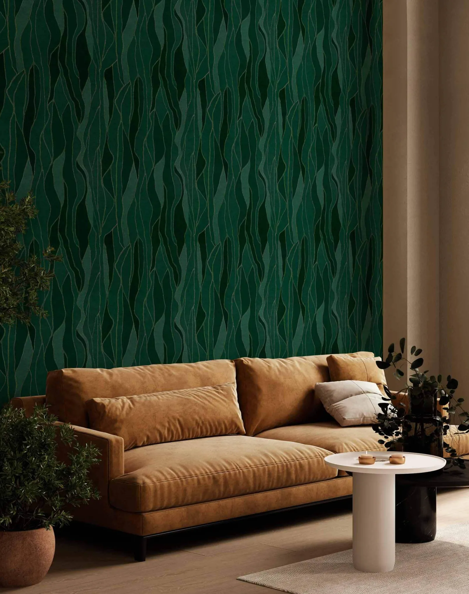 Collage Emerald de Coordonné es un papel pintado de inspiración vegetal en tonos verdes.