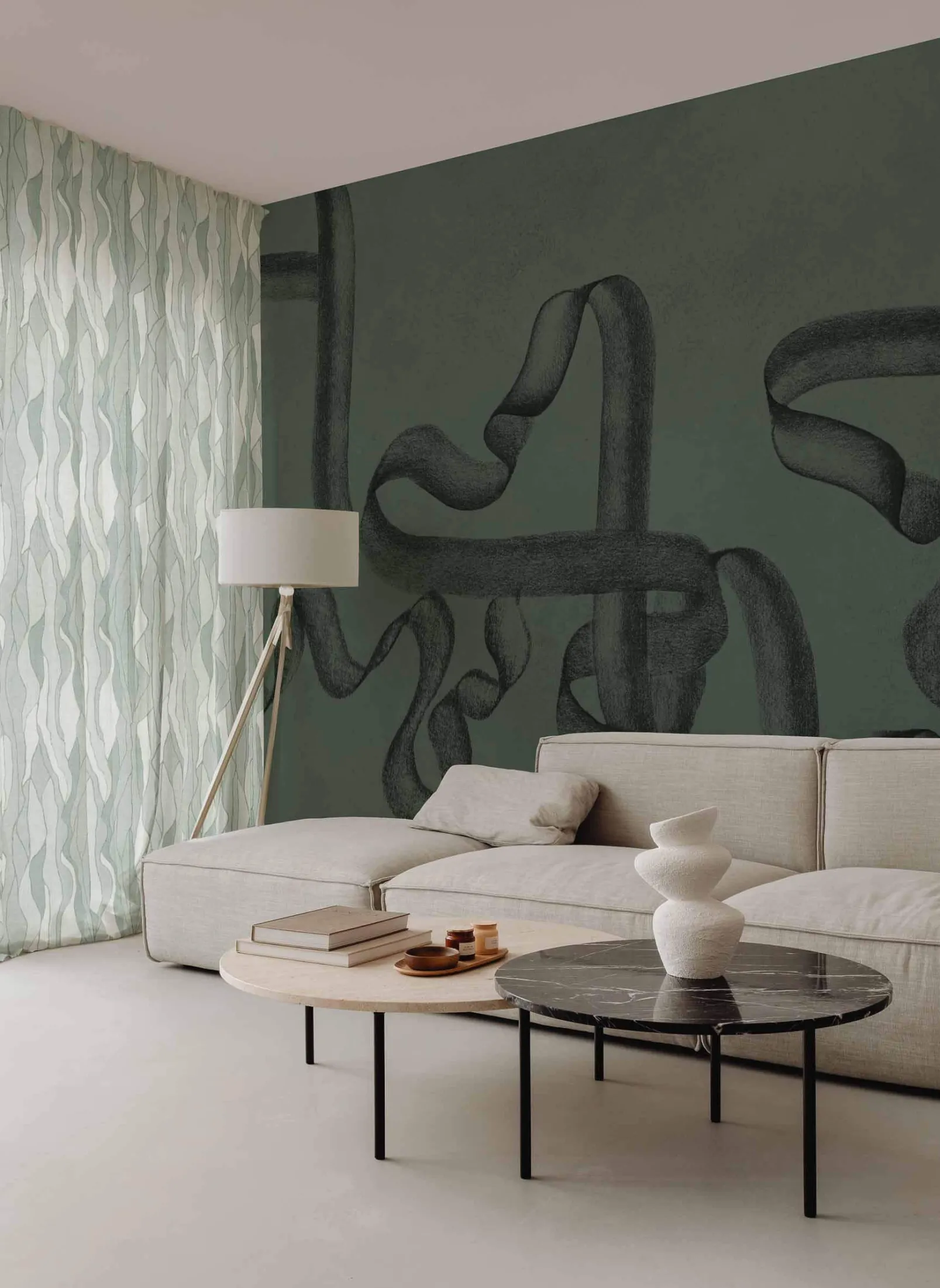 Collage Lagoon de Coordonné es un diseño inspirado en Texturas en Beige/Nude de la colección Artisan Fabrics. Una interpretación abstracta de los bosques submarinos. Las técnicas de acuarela y tinta capturan el movimiento de las algas bajo el agua.