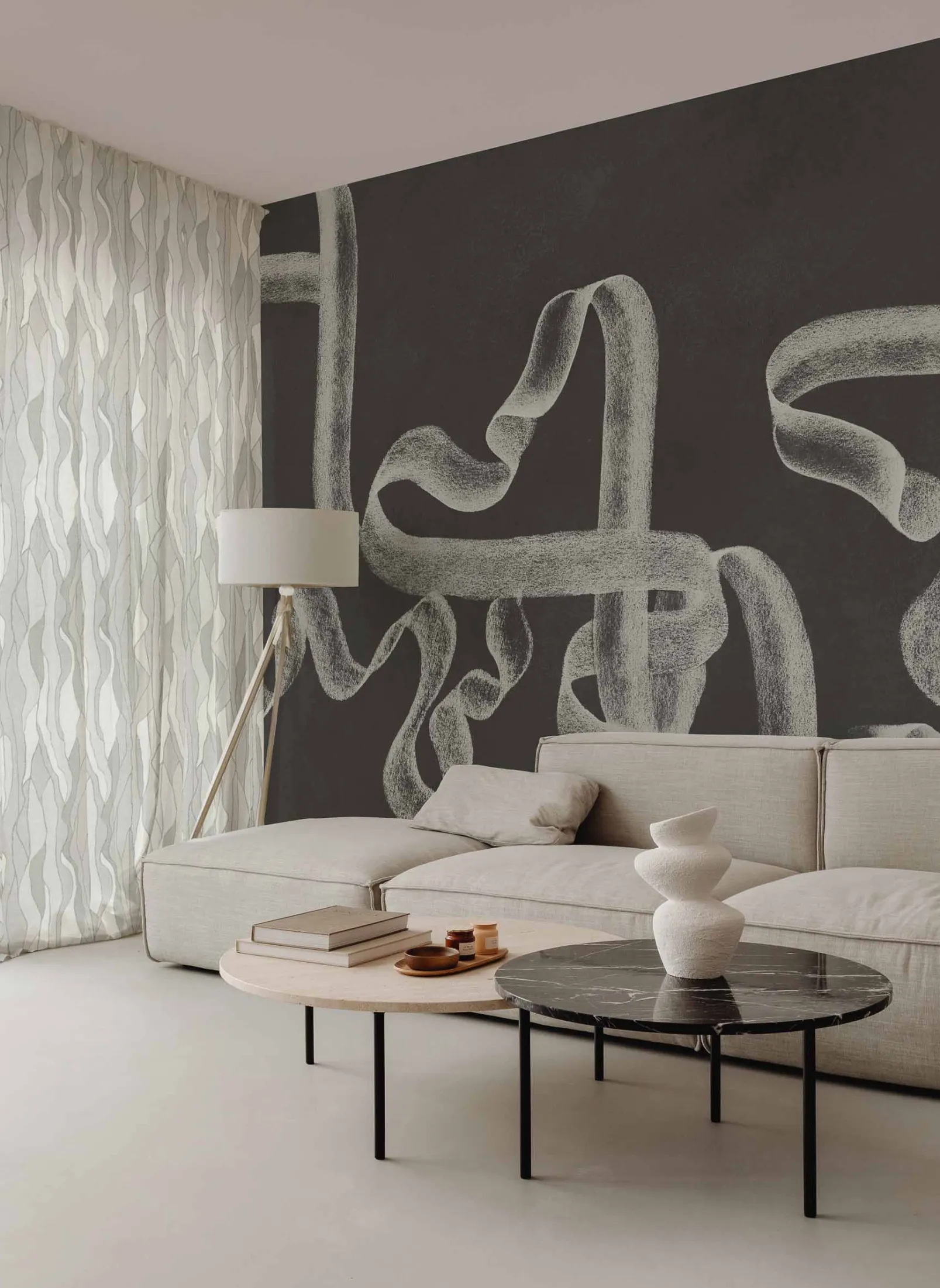 Collage Pearl de Coordonné es un diseño inspirado en Texturas en amarillo/naranja de la colección Artisan Fabrics. Una interpretación abstracta de los bosques submarinos. Las técnicas de acuarela y tinta capturan el movimiento de las algas bajo el agua.