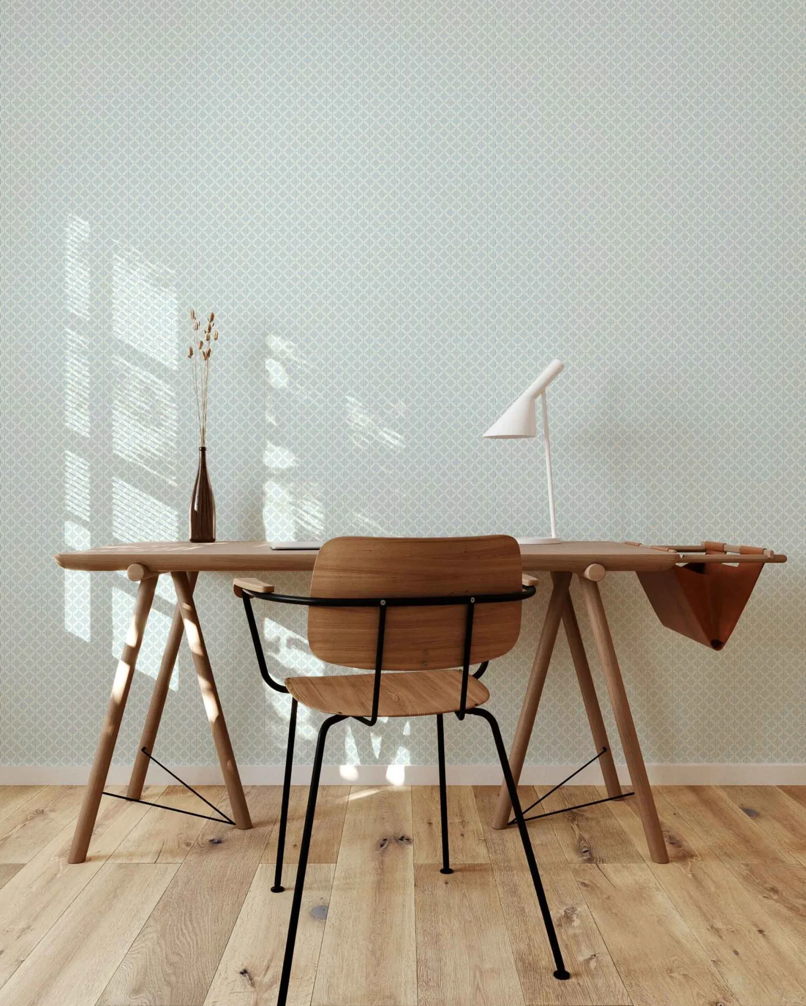 El papel pintado Corset Sky de Coordonné es un diseño geométrico en tonos azul/marino de la colección Enchanted.