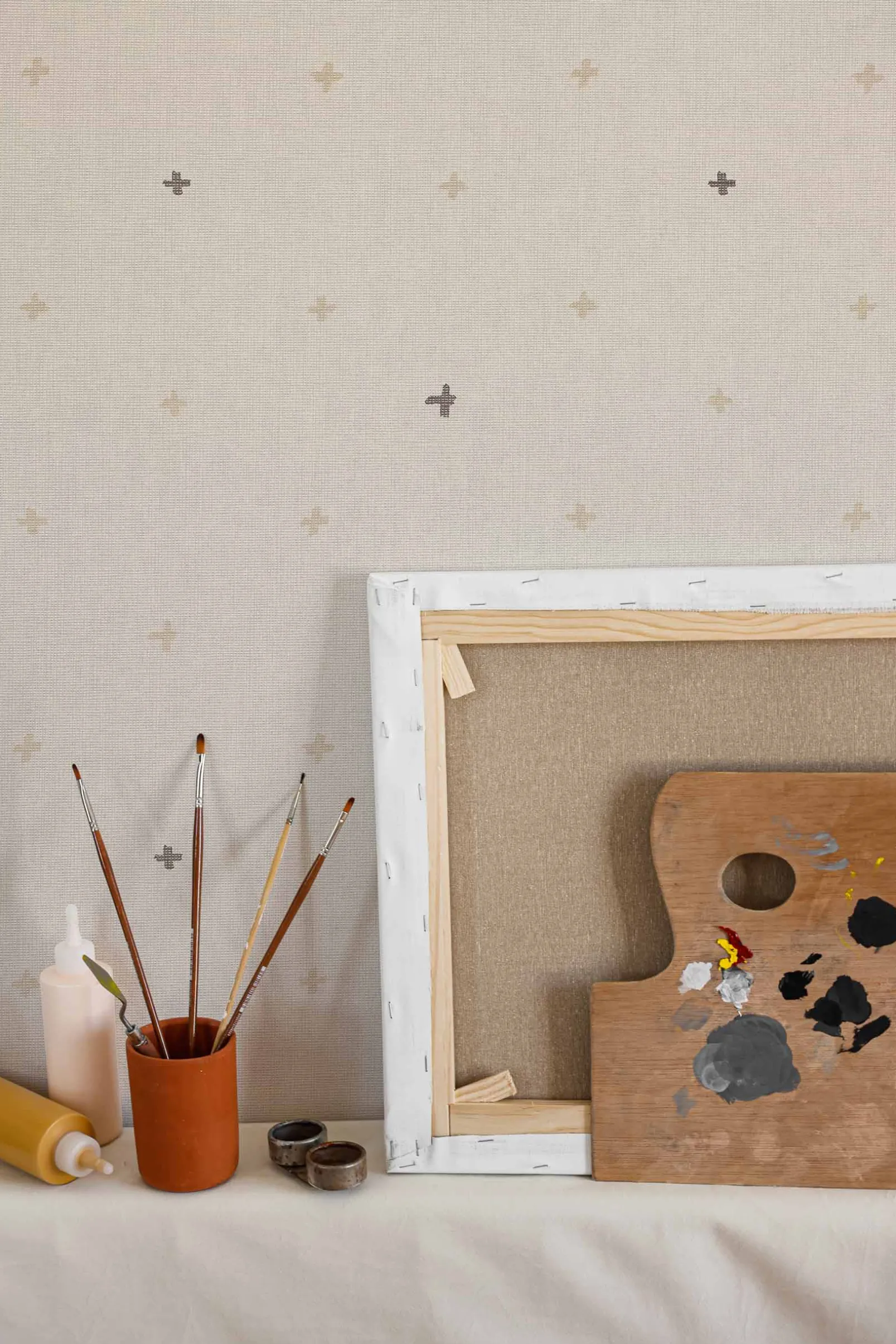 El papel pintado Croix Cozy de Coordonné es un diseño Geométrico en tonos Beige/Nude de la colección Ines de la Fressange.