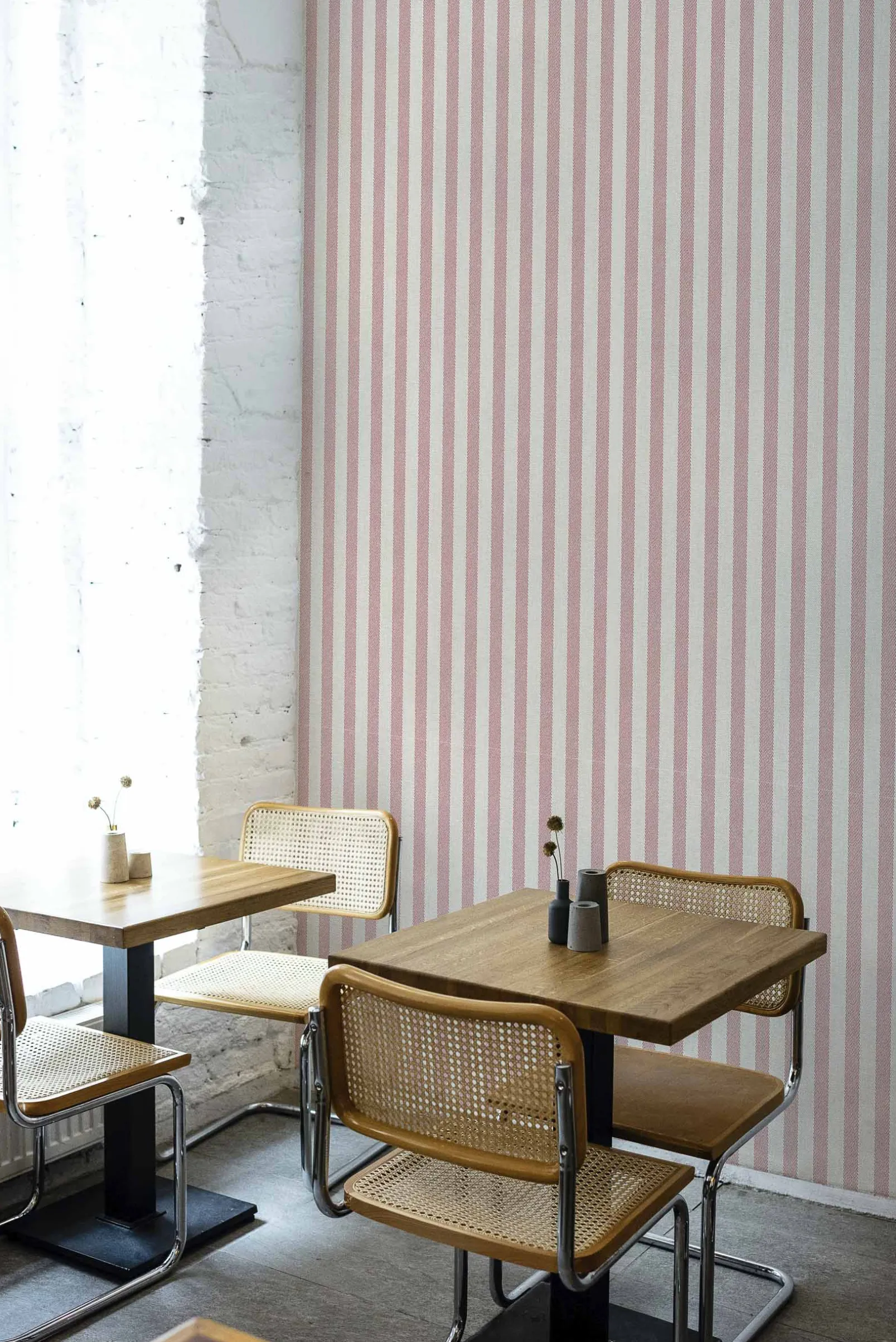 El papel pintado Cropland Pink de Coordonné es un diseño de rayas en tonos rosa/lila de la colección Botanika.