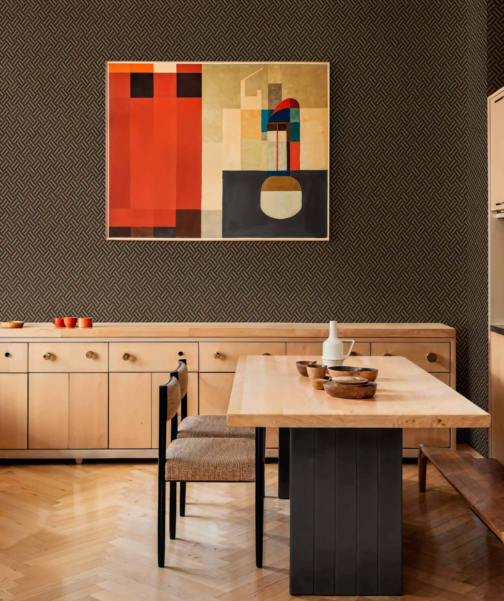 Crosshatch Slate de Coordonne es un papel pintado de inspiración geométrica en tonos negros de la colección Lattice Geometrics. Paralelos en diferentes direcciones.