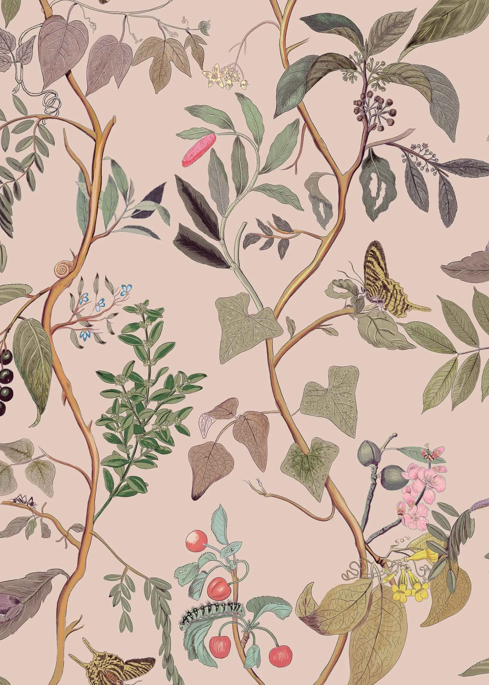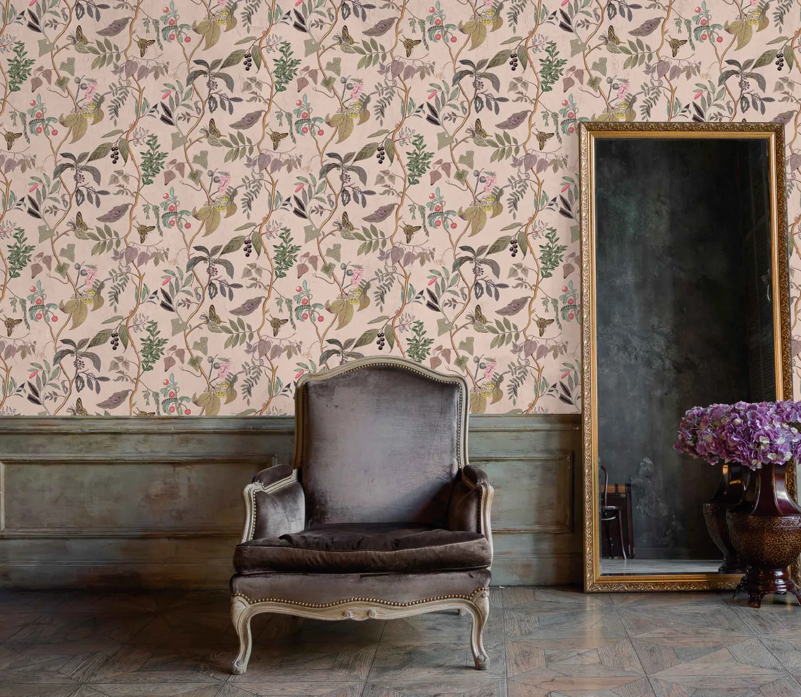 El papel pintado Diderot Nude de Coordonné es un diseño en tonos rosa/lila de la colección Maximalism.