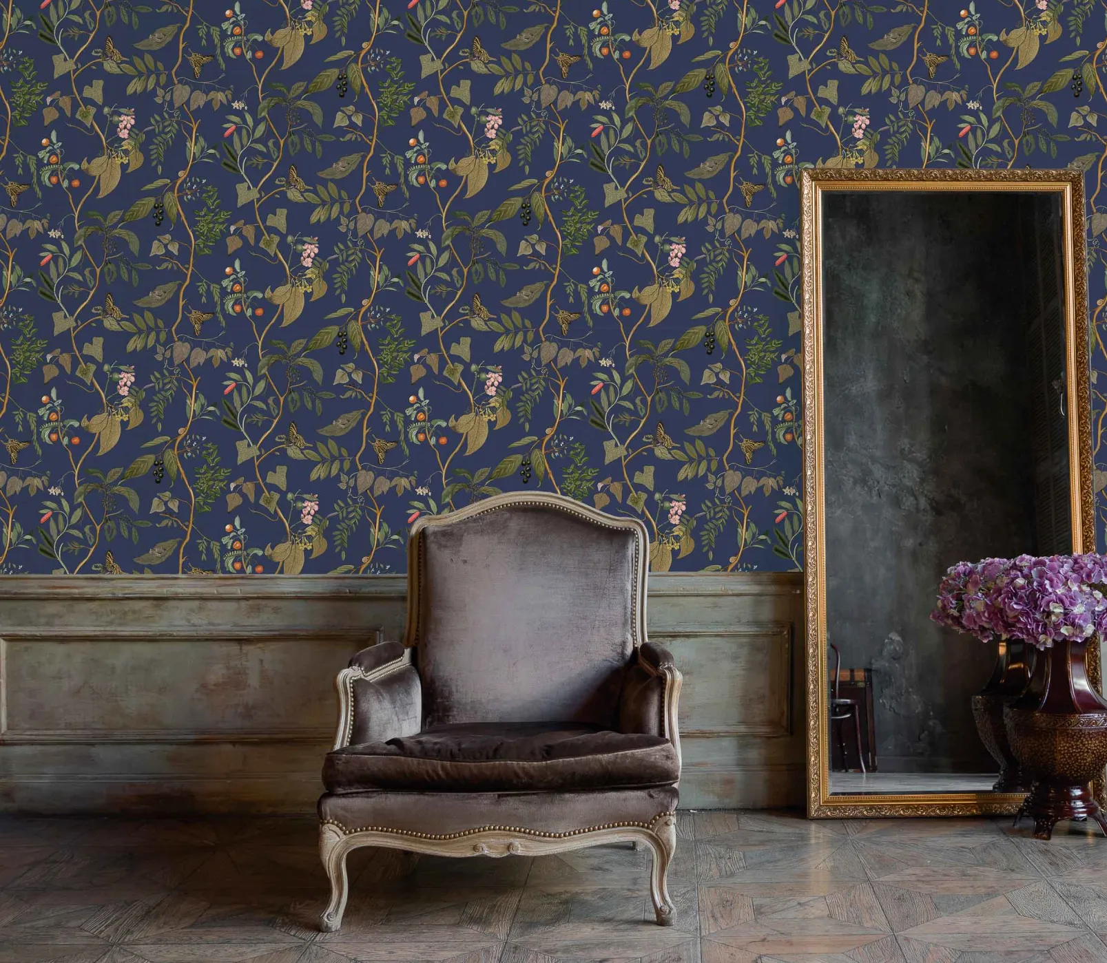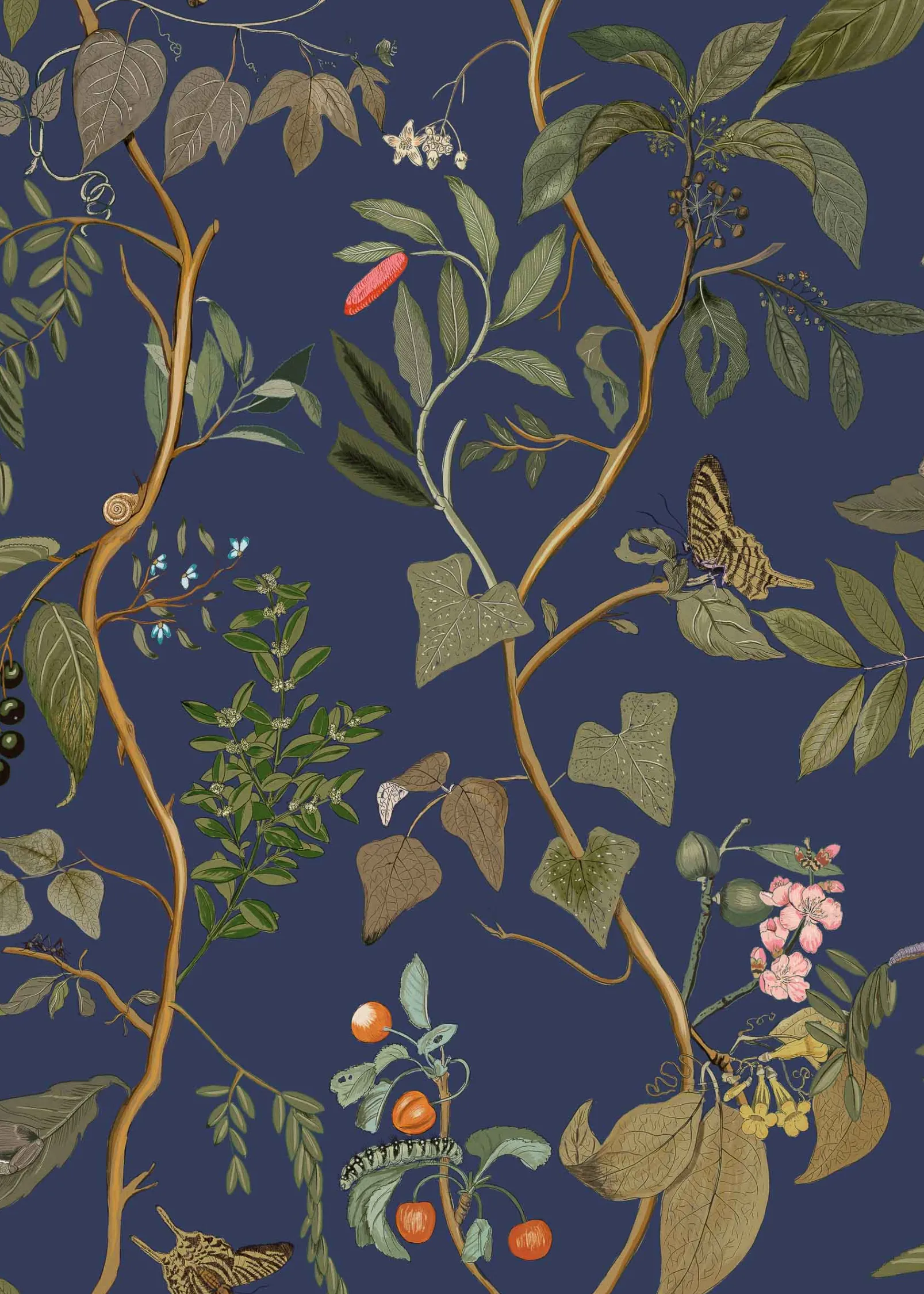 El papel pintado Diderot Topaz de Coordonné es un diseño vegetal en tonos azules/azules de la colección Maximalism.