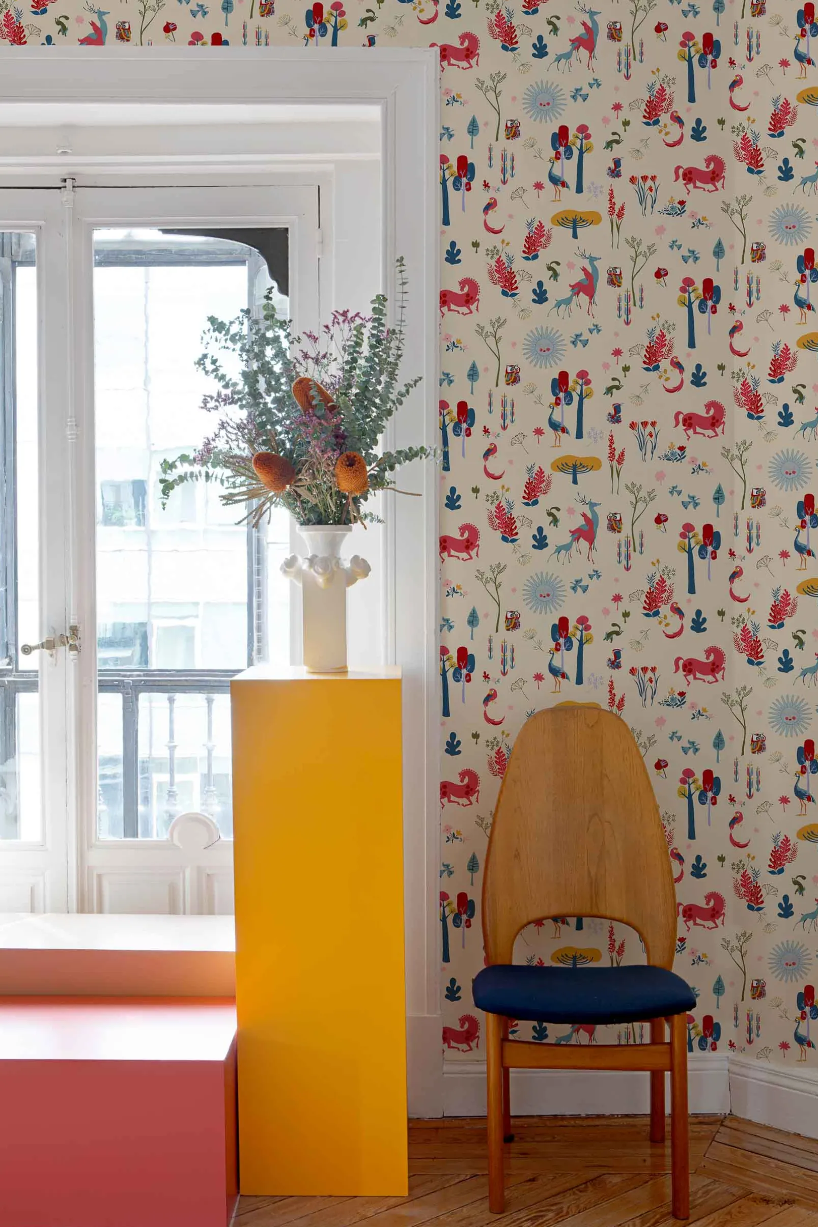 Papel Pintado El bosque animado Día Coordonné de la colección 40 aniversario con diseño Animales en tonos Beige/Nude